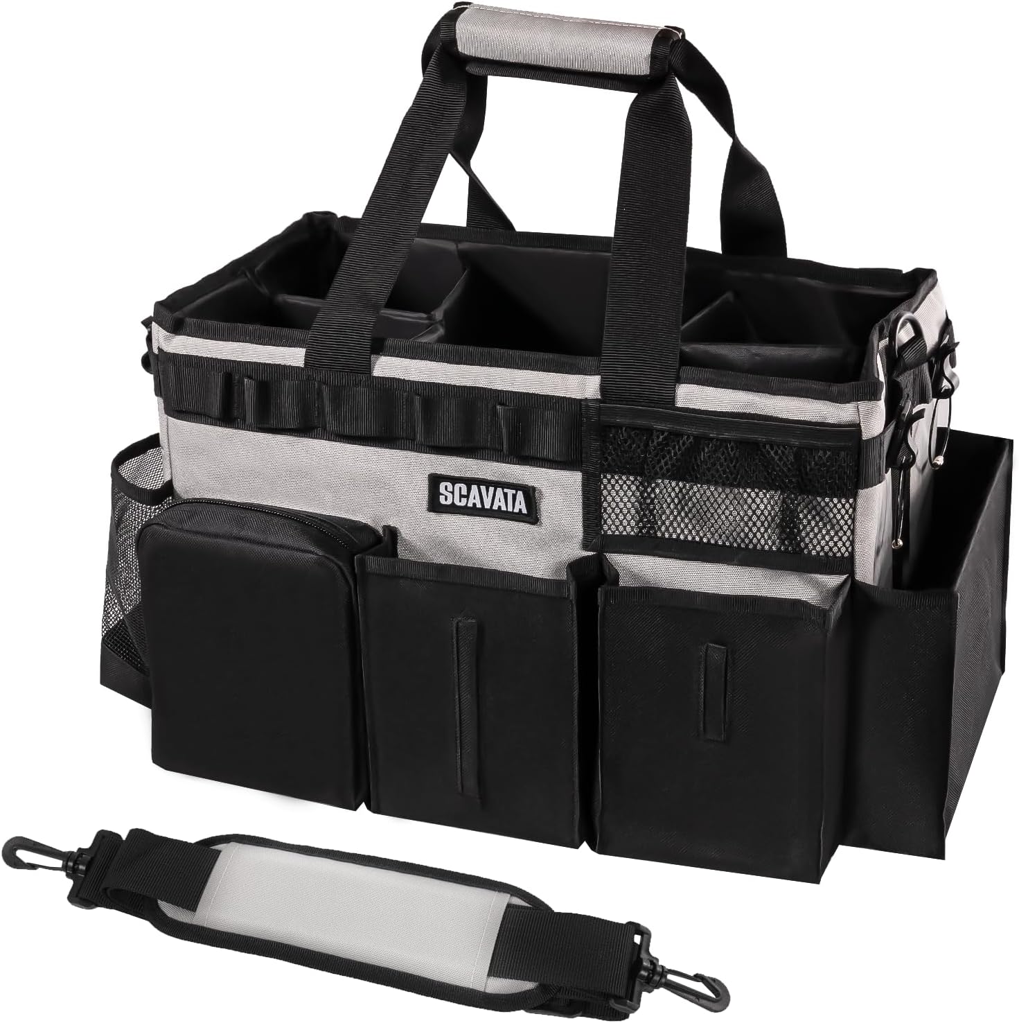 • High Quality Material: The portable cleaning organizer made of premium water-resistant 900D fabric material and reinforced PP boards which is durable and lightweight. The adjustable shoulder strap and waist strap are comfortable enough for carrying. Professional cleaning caddy organizer for cleaners & housekeepers