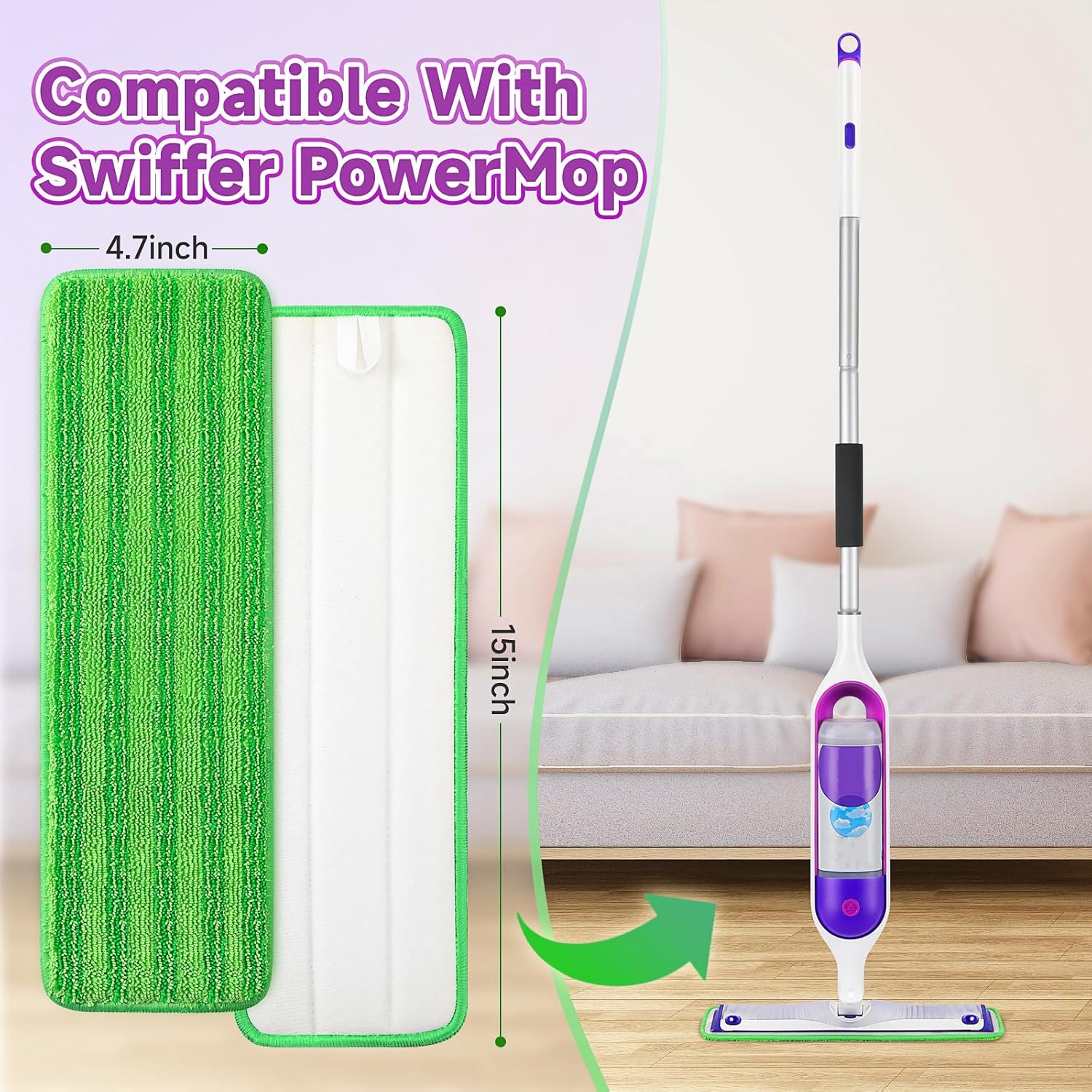 • Perfect Compatibility: Ashsajkd reusable powermop refills are compatible with Swiffer PowerMop spray mops and can be used for 13-15 inch spray mops.Tips: Please soak the power mop pads for 5-10 minutes before first use, then they can restore the thickness and stickiness