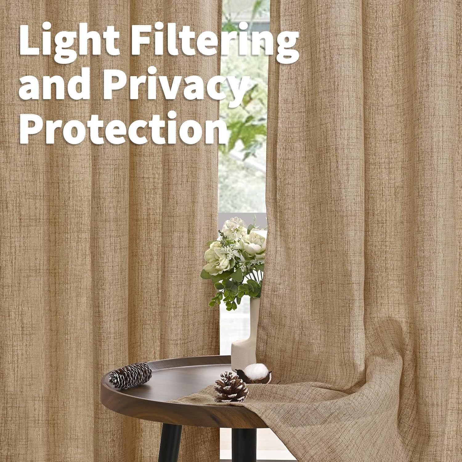 YoungsTex Burlap Linen Semi Sheer Curtains 72 Inch Length for Living Room, Semi Sheer Window Treatments Light Filtering with Rod Pocket Back Tab for Farmhouse Bedroom, Toffee, 2 Panel, 52 X 72 Inch