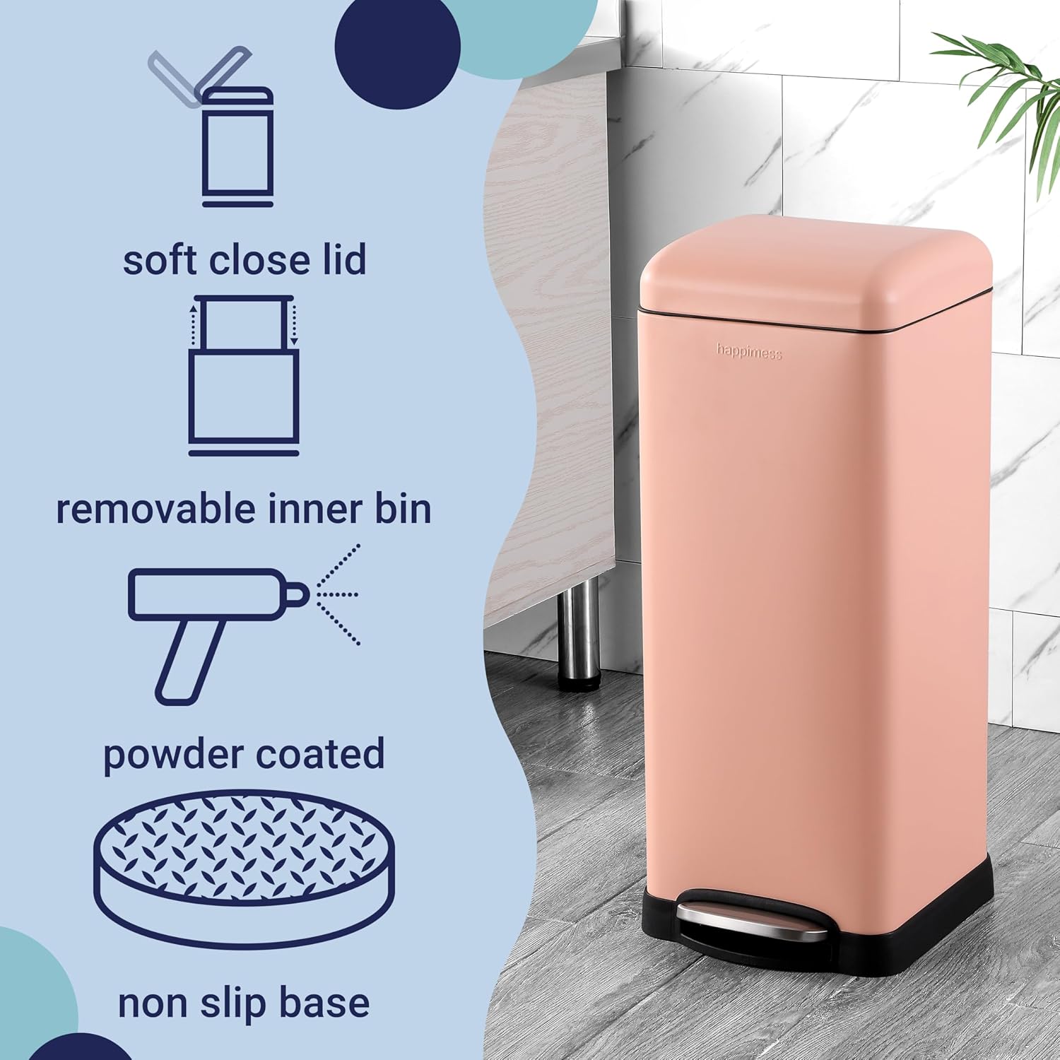 happimess HPM1007J Betty Retro 8-Gallon Step-Open Trash Can, Fingerprint Resistant, Modern, Minimalistic for Home, Kitchen, Laundry Room, Office, Bedroom, Bathroom, Flamingo Pink
