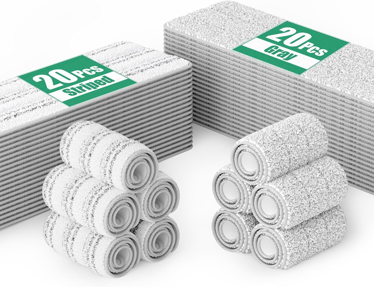 JOYMOOP Flat Mop Pads, Microfiber Mop Cleaning Pads, Washable Pads, Pads Replacement Flat Mop or Mop Bucket Set, Pack of 50 Refills 13inch - Grey and Stripe
