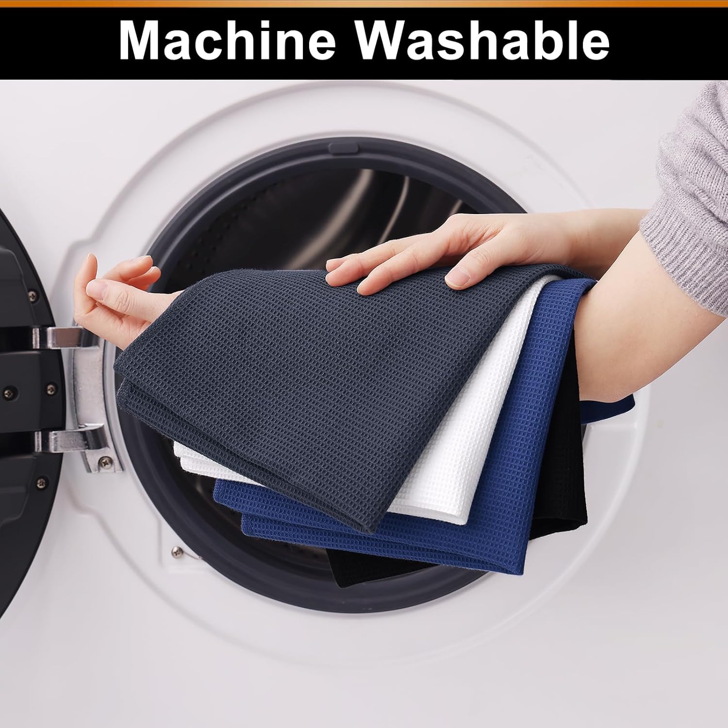 • High Absorbency: The kitchen tea towels feature waffle weave, which makes them compact, long-lasting, and highly absorbent