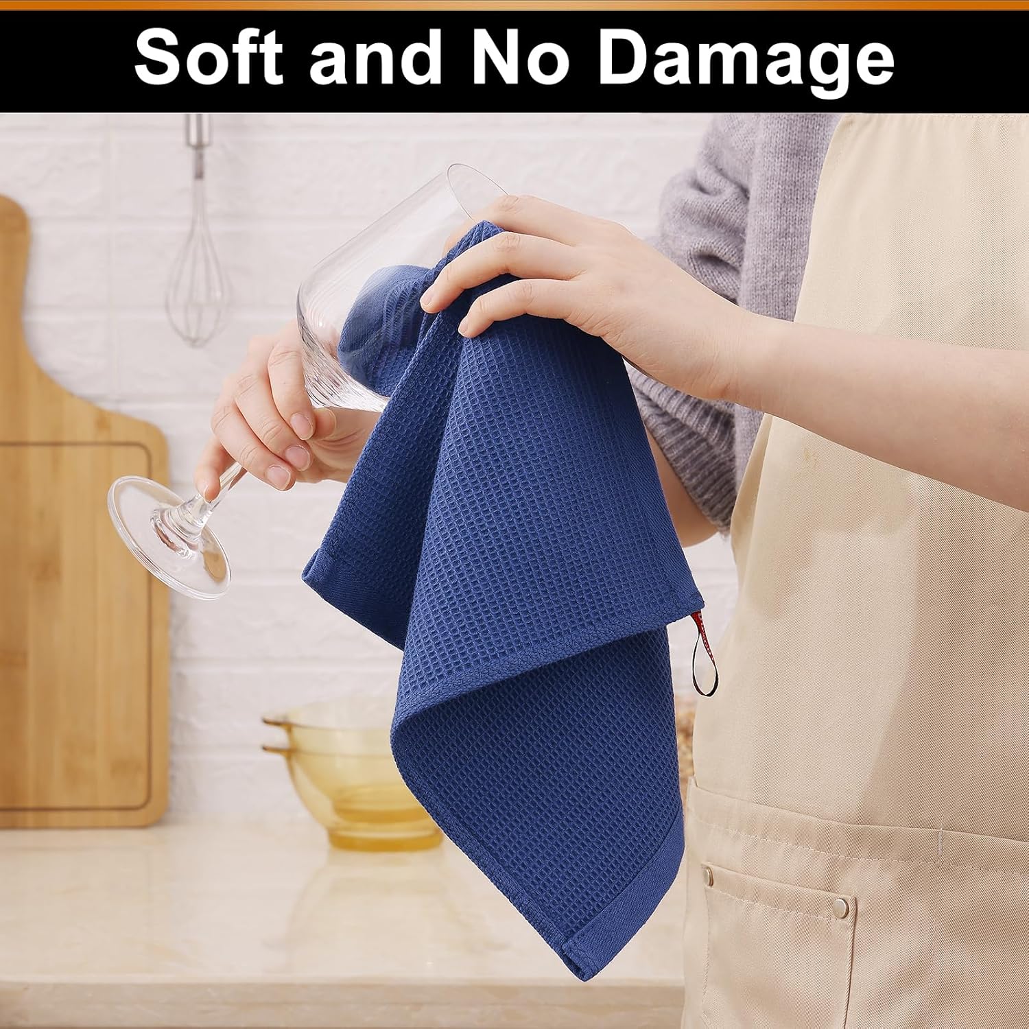 Homaxy 100% Cotton Kitchen Towels and Dishcloths Set - 8 Pack Waffle Weave Soft and Absorbent Dish Towels - 26 X 16 Inch and 12 X 12 Inch - Navy Blue
