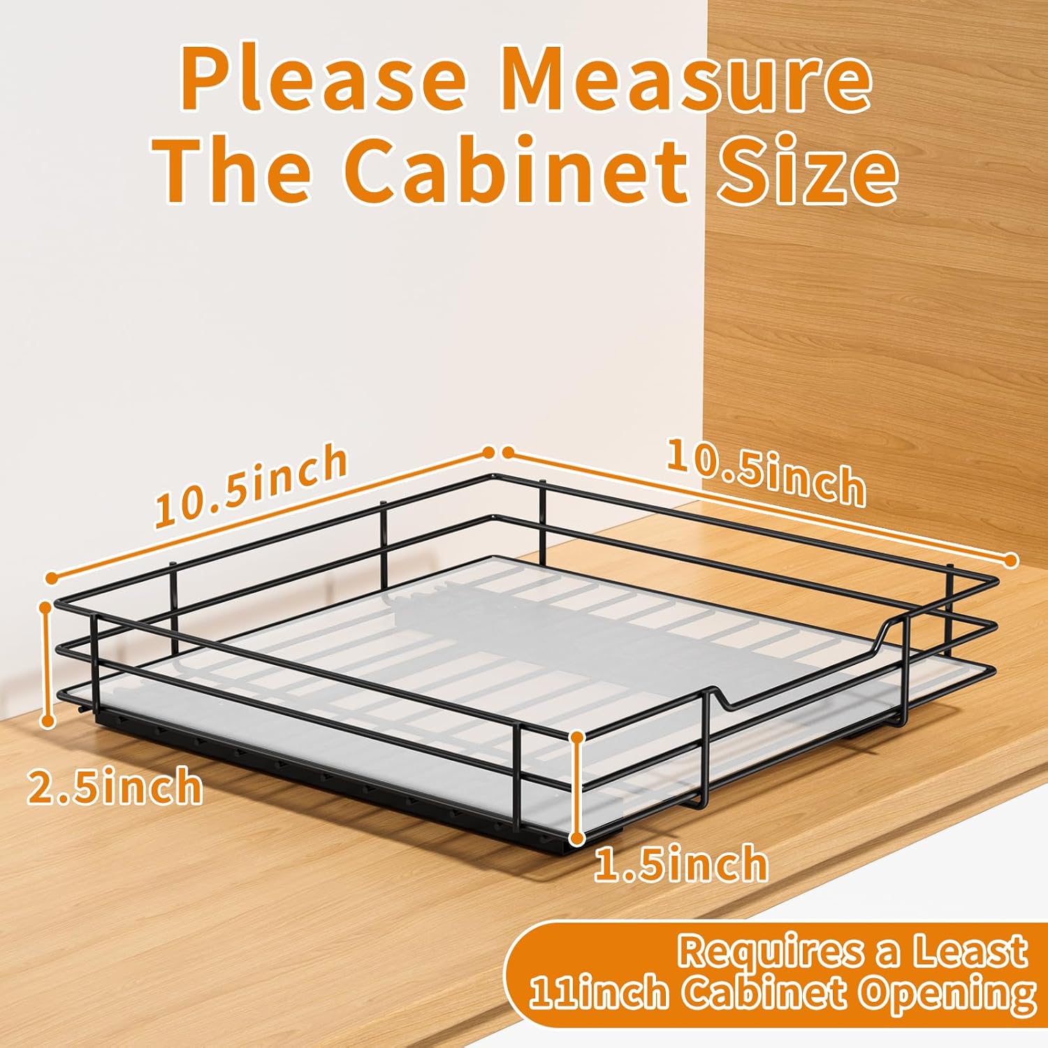 RCHYFEED Pull Out Spice Rack Organizer for Cabinet,Slide out Spice Organization for Inside Cabinets,Heavy Duty Seasoning Organizer Fits Kitchen and Pantry,Sauces,Canned (10.5''Wx10.5''Dx2.5''H)