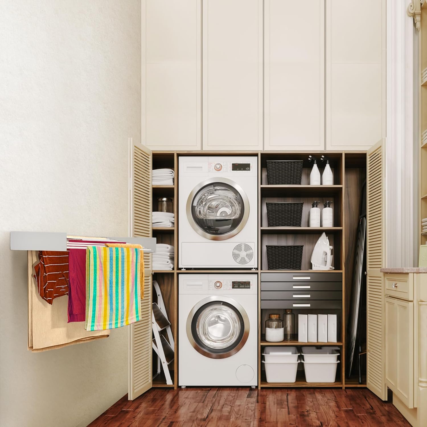 • LARGE DRYING SPACE & HEAVY WEIGHT CAPACITY: Our foldable laundry drying rack features 7 heavy-duty aluminum rods with 27 feet of linear hanging line and can hold up to 70 lbs weight.