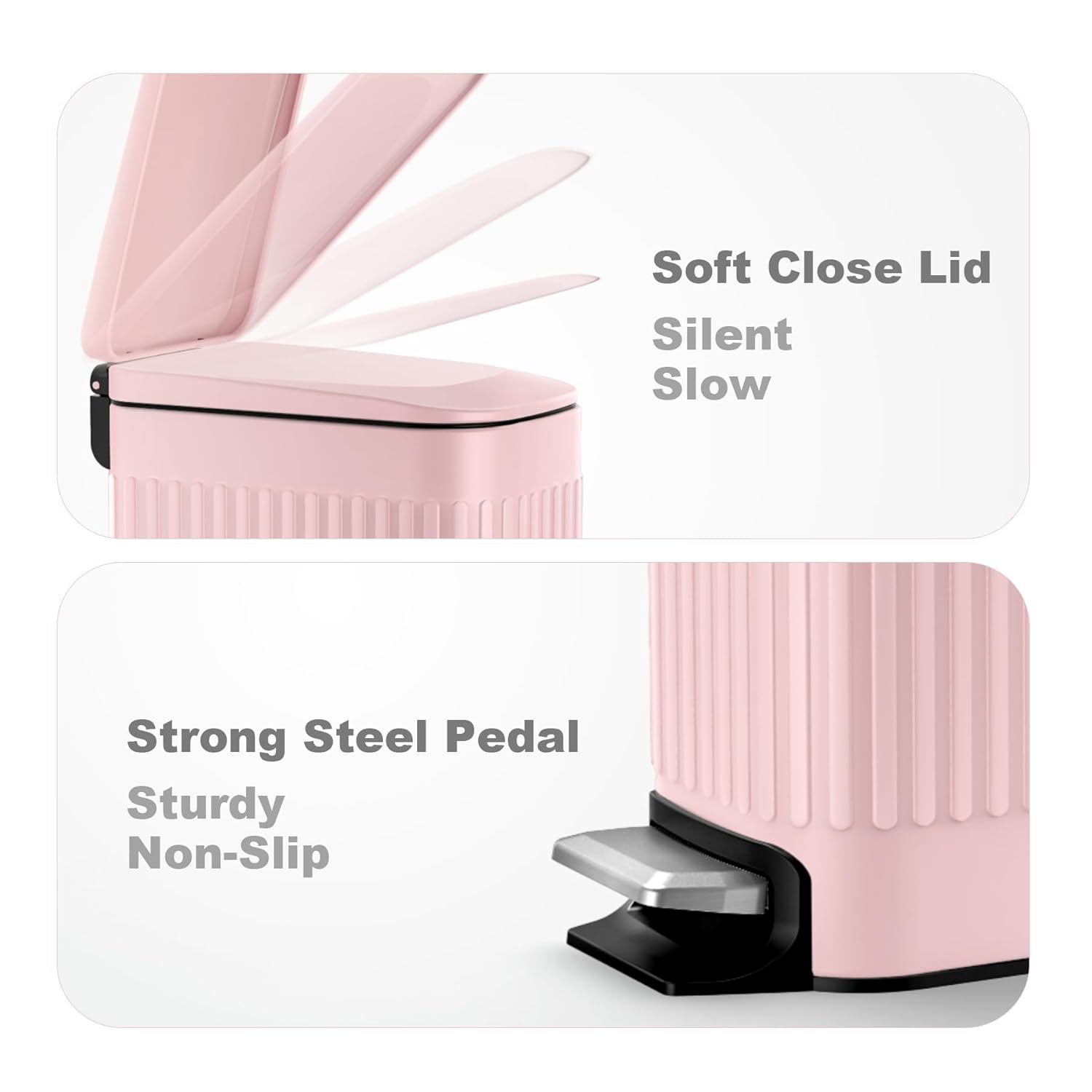 • Pink Room Decor - The small pink garbage can is made of thickened premium grade stainless steel. The unique embossed design makes the garbage can have a cute and elegant appearance, which is attractive and decorative while being practical.