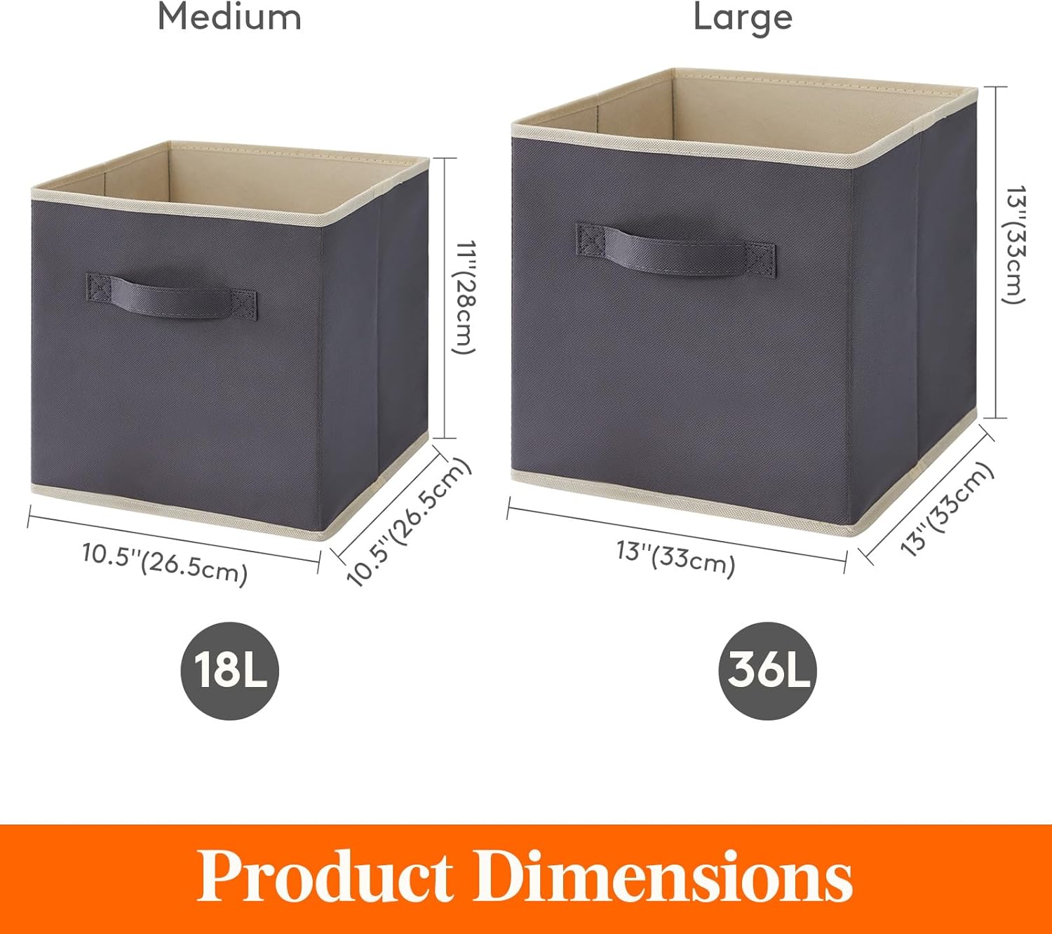 Lifewit 13 Inch Cube Storage Bins, 12 Packs Storage Cubes Foldable Decorative Fabric Storage Baskets for Organizing Home Organizers with Handles for Shelves, Closet, Grey
