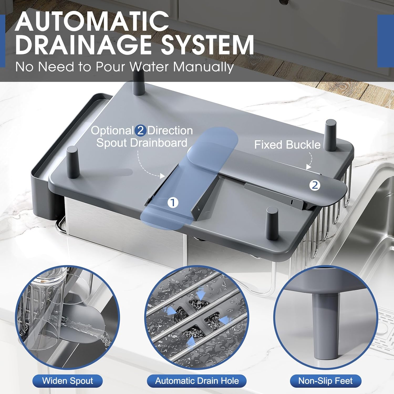 • Premium 304 Stainless Steel Dish Drying Rack: Built with surgical-grade 304 steel (trusted in professional kitchens!), this over sink dish drying rack resists rust and corrosion forever. No flaky coatings, no stains – just a durable drying rack that survives daily chaos by your kitchen sink!