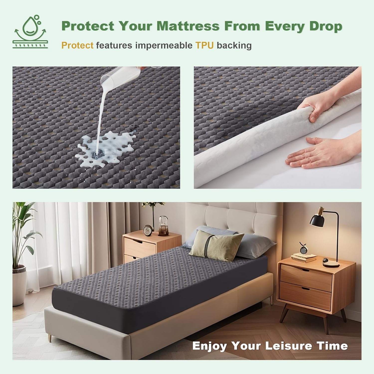 • Waterproof and Breathable: BEDLORE twin xl mattress protector features impermeable TPU backing, shielding your mattress from fluids, perspiration, urine, and stains so that your mattress is always dry and stain free, further enhances the overall lifespan of your mattress. Our gray mattress protector twin xl ideal for households with pets or seniors