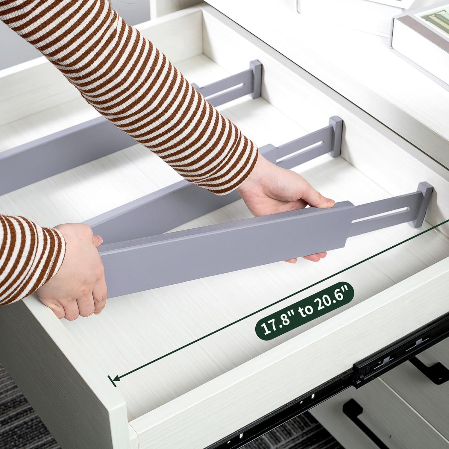 Utoplike Bamboo Drawer Dividers Large, Gray Kitchen Drawer Organizers Adjustable, Spring Loaded, Works in Dresser, Bathroom, Bedroom, Desk, 4 pcs, 2.4" H