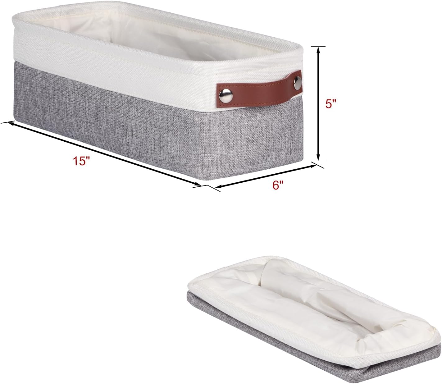 • 【 Narrow Baskets Size】- Dimensions(each): 15(L) x 6(W) x 5(H) inch/38x15x13cm.Small long storage baskets make full use of narrow spaces,great for storing socks,underwear, decorations,makeup,office supplies,keys,small Items.