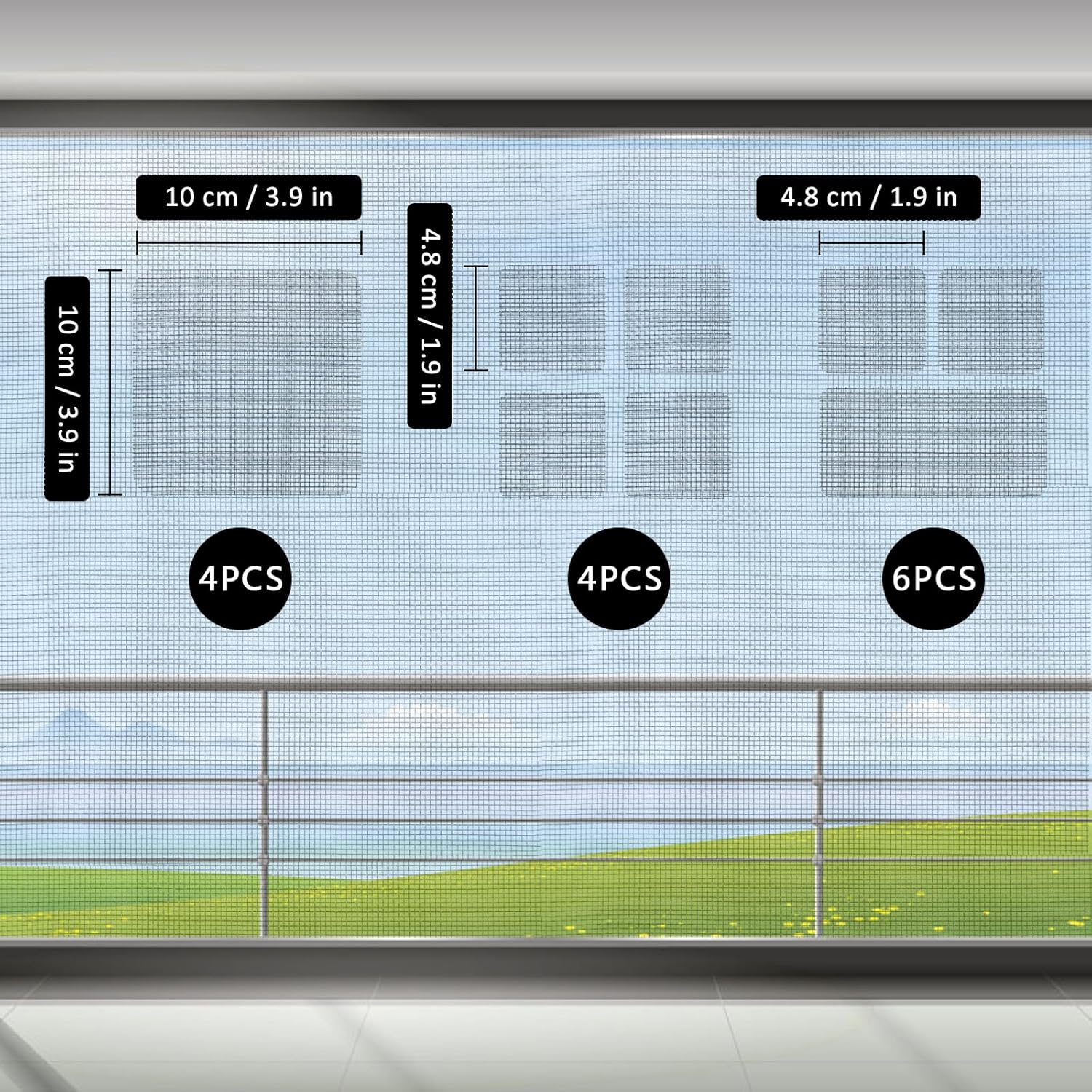 14 Sheets Window Screen Patches Repair Kit, Grey/Black 3 Sizes Window Screen Repair Kit for Mesh Screen Door, Strong Adhesive Fiberglass Quick Screen Repair Tape