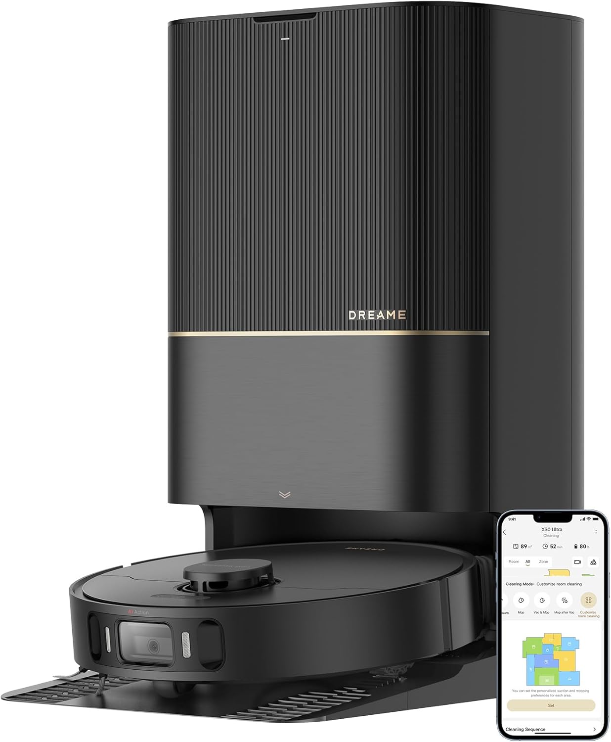 dreame X30 Ultra Robot Vacuum and Mop Combo, 8300Pa Suction, Mop Extend and Mop Self Cleaning with 140°F Water, Removable & Liftable Mop, Self Refilling, Mop Self Drying, Smart Carpet Cleaning