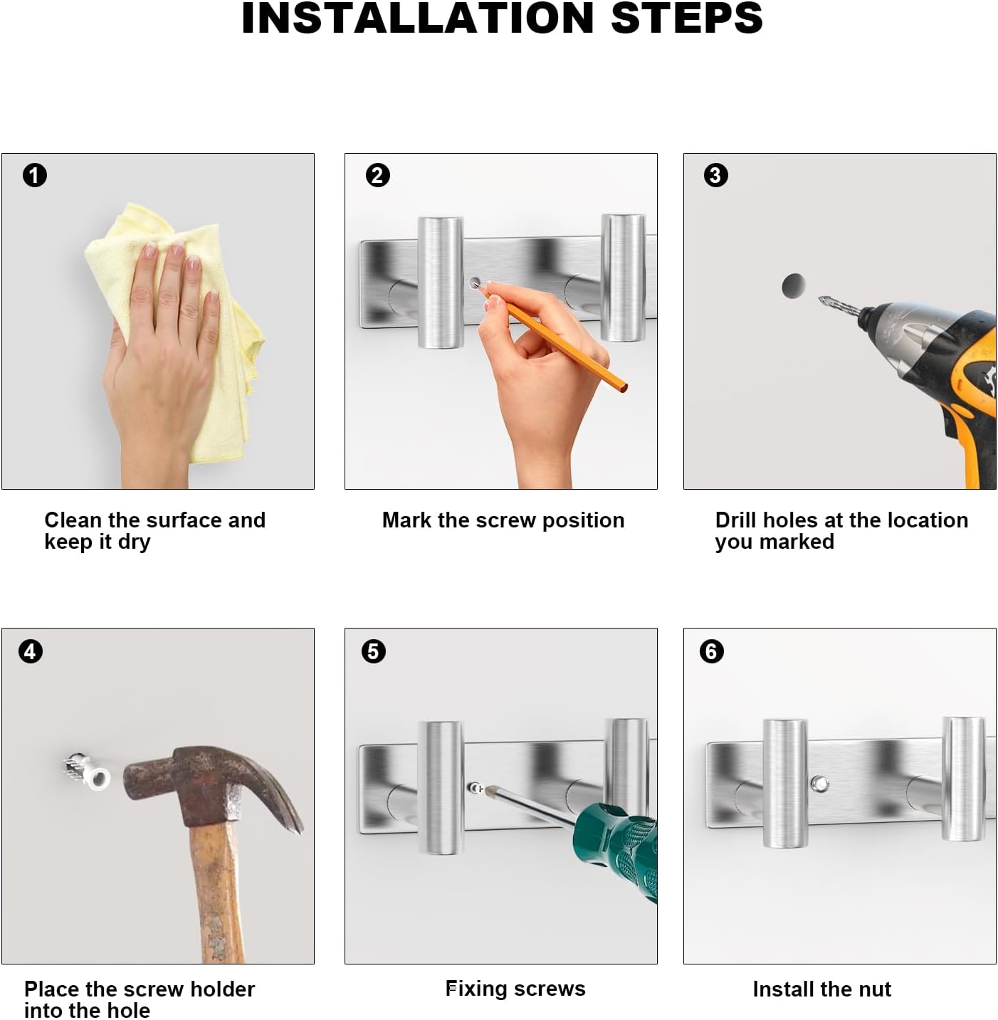 • ANTI SLIP AND SCRATCH RESISTANT:Each hook features thoughtful protrusions to prevent clothes and hats from slipping, and its smooth surface won't scratch towels, jackets, or coats
