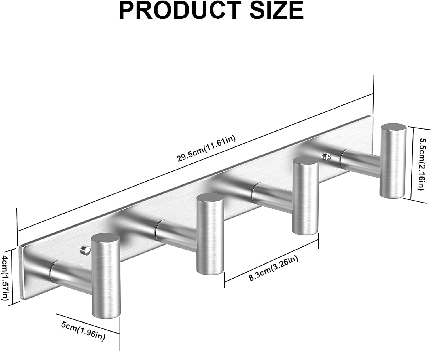 • VERSATILE USE:This Silvery Row Hook Coat Rack with 4 Hooks is good for various locations, including bathrooms, kitchens, living rooms, entrances, and offices. Use it to hang towels, kitchenware, coats, hats, jackets, wallets, keys, and more, adding functionality and organization to your space