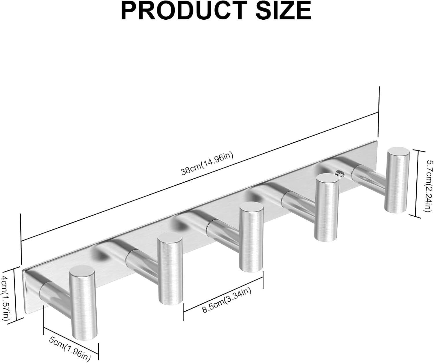 • VERSATILE USE:This Silvery Row Hook Coat Rack with 5 Hooks is good for various locations, including bathrooms, kitchens, living rooms, entrances, and offices. Use it to hang towels, kitchenware, coats, hats, jackets, wallets, keys, and more, adding functionality and organization to your space