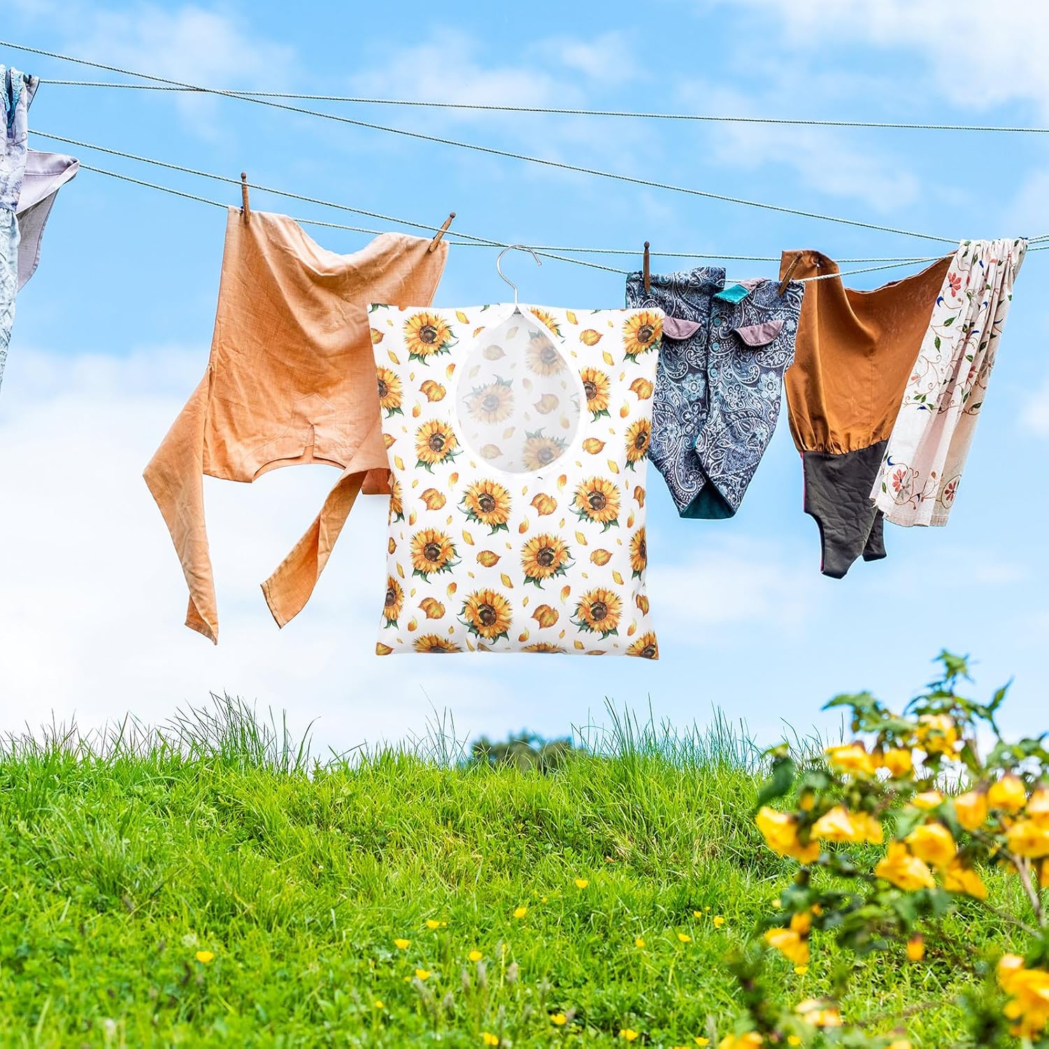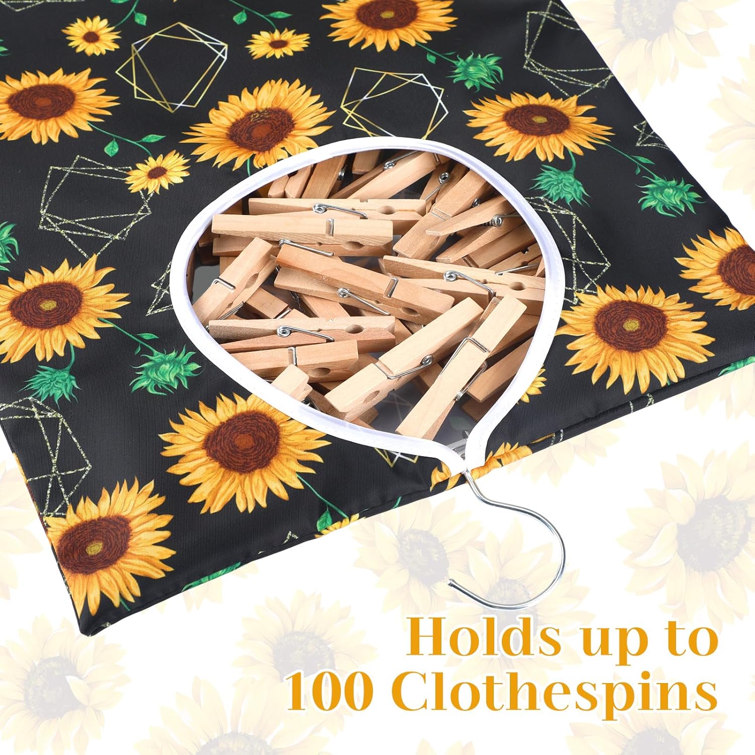 Woanger 2 Pcs Clothes Pin Bag Clothespin Holder 15 x 11 in to Hang on Line Clothes Pin Hanging Bag for Clothesline Outdoor Storage Organizer Basket with Large Opening(Sunflower Style)