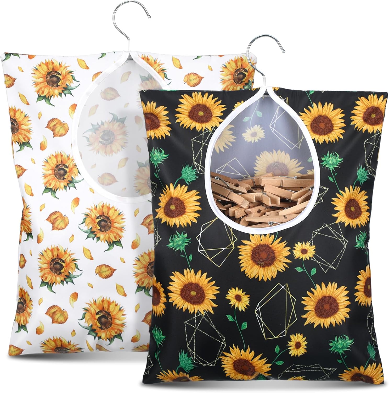 • Summer Theme: package includes 2 pieces of clothespin bags with hanger in different summer designs, one is decorated with sunflower pattern and white background and the other is decorated with sunflower pattern and black background, can add charm to your home; Proper quantity can satisfy your different daily use and replacement needs