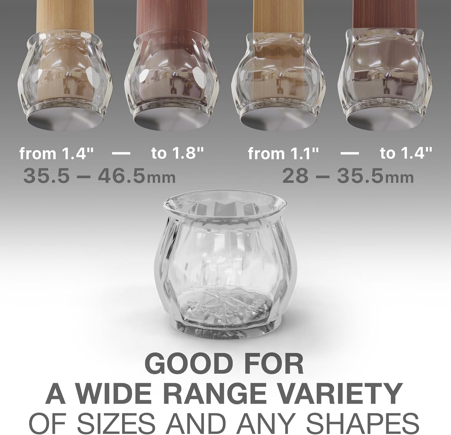 • ✌ SIZE DOESN'T MATTER - X-Protector Non-Skid Chair Socks for chair legs are GOOD FOR ANY SIZE AND SHAPE - furniture grippers are GOOD FOR ROUND LEGS 1.4” - 1.8” AND SQUARE LEGS 1.1” - 1.4”.