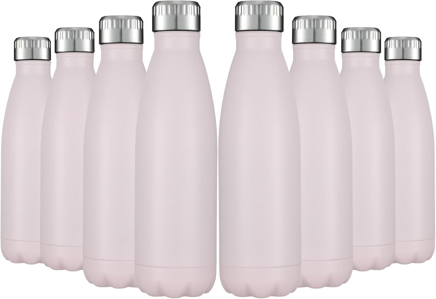 HASLE OUTFITTERS 17oz Stainless Steel Water Bottles Bulk, Vacuum Insulated Water Bottles Double Walled Powder Coated Reusable Metal Sports Water Bottles Keep Drinks Hot and Cold,Pink, 8Packs