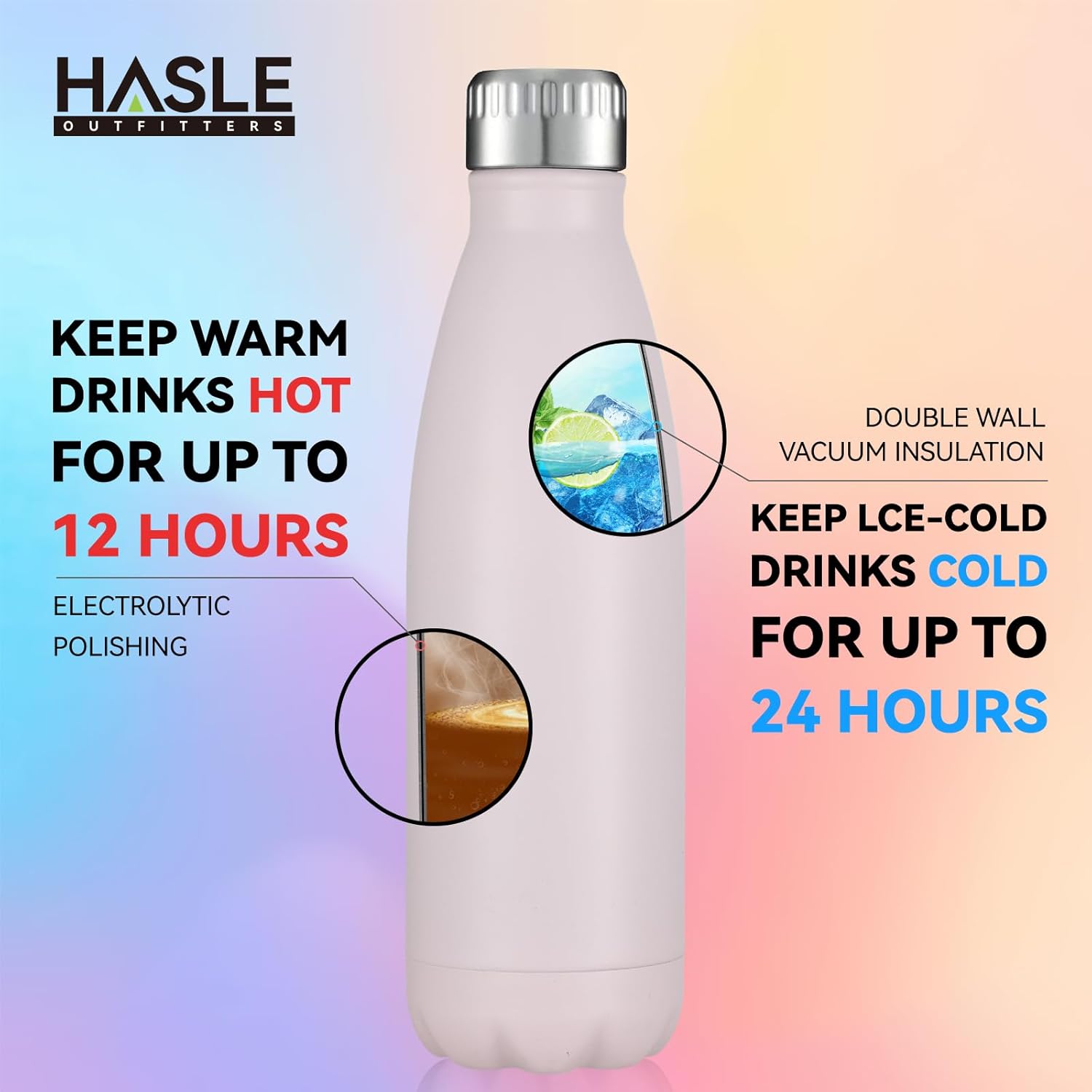 • EXCELLENT HEAT AND COLD PRESERVATION TECH: These thermal water bottles are produced with advanced heat preservation technology and also leakproof and shatterproof to keep your favorite drinks cold up to 24 hours and hot more than 12 hours