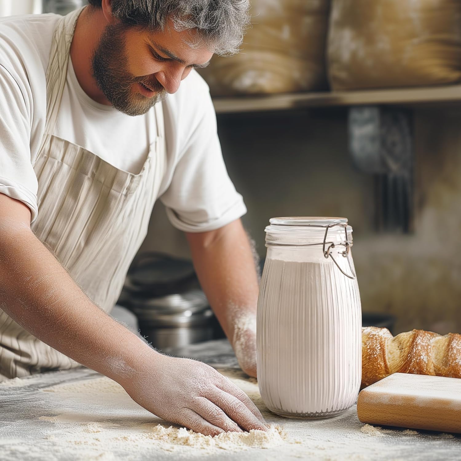 • Versatile Glass Container: The flour sugar storage containers can be a pickling jars for home and kitchen; It is good to preserve various food like jams, chutneys, flour, cereal, sugar, spices, nuts, tea, dried beans and your favourite snacks like biscuits