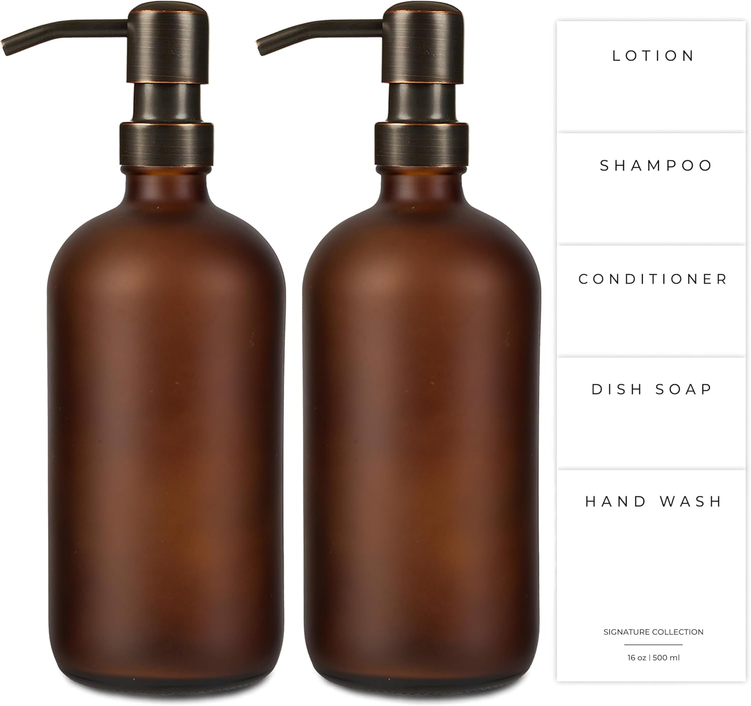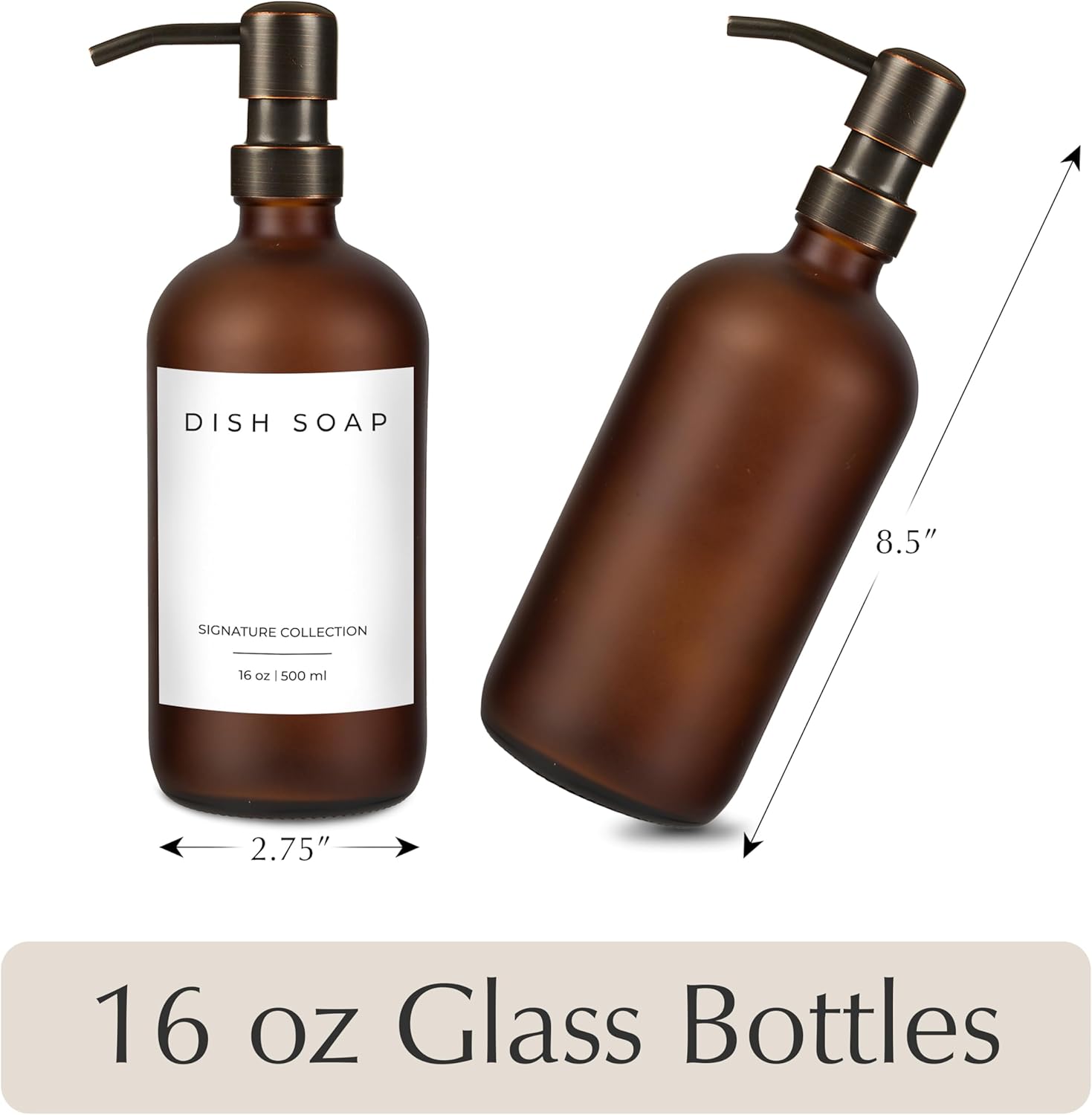 • ✅ KITCHEN OR BATHROOM USE: While other dispensers peel over time, our dispensers are made of premium quality and last far longer. The bathroom soap dispensers and kitchen soap dispenser set are 16 ounces and are refillable, requiring fewer refills. Ideal for using as a bathroom soap dispenser set and the glass soap dispenser with pumps boast 2 cc stainless steel pumps.
