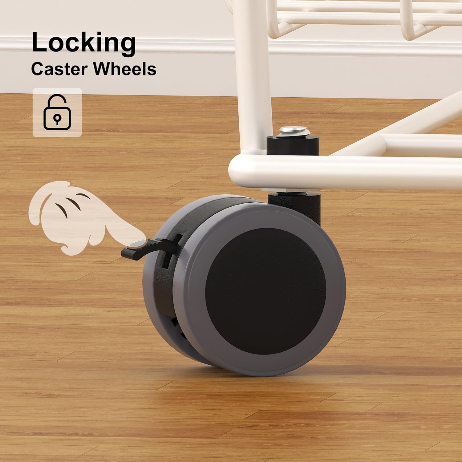- 【Easy to Assemble】The previous wheel defect problem has been solved! No hassle setup. Simply slide each Storage Basket bottom into the top of another, you could set the rack very well, apply the 4 upgraded wheels according to your needs. Two of the casters are lockable, to keep the storage organizer securely in place when needed. Picture instructions also included with product