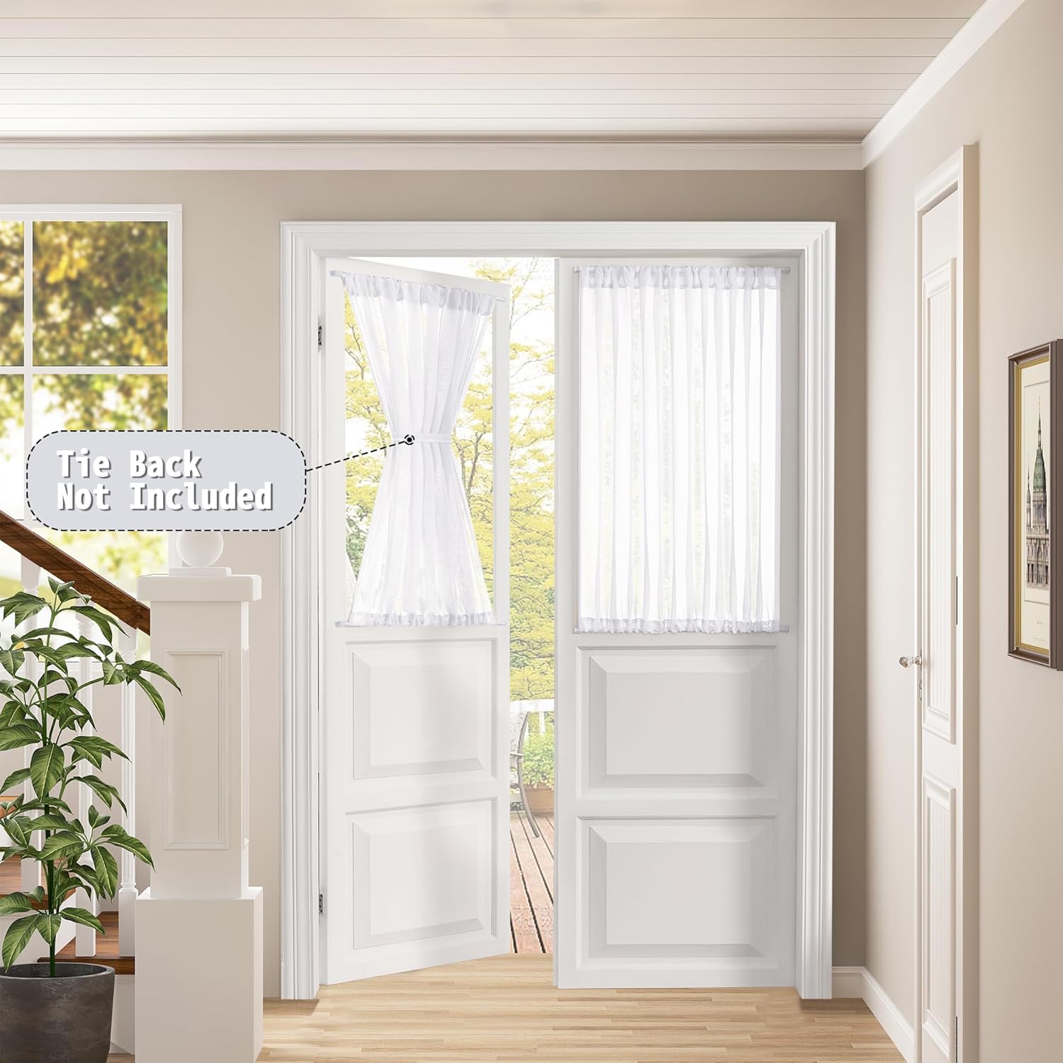 Tollpiz Short Sheer Door Curtain Closet Linen Textured Curtain Sheers Doorway Light Filtering Voile Patio Glass Door Rod Pocket Curtains French Door, 54 x 54 inches Long, White, Set of 1 Panel