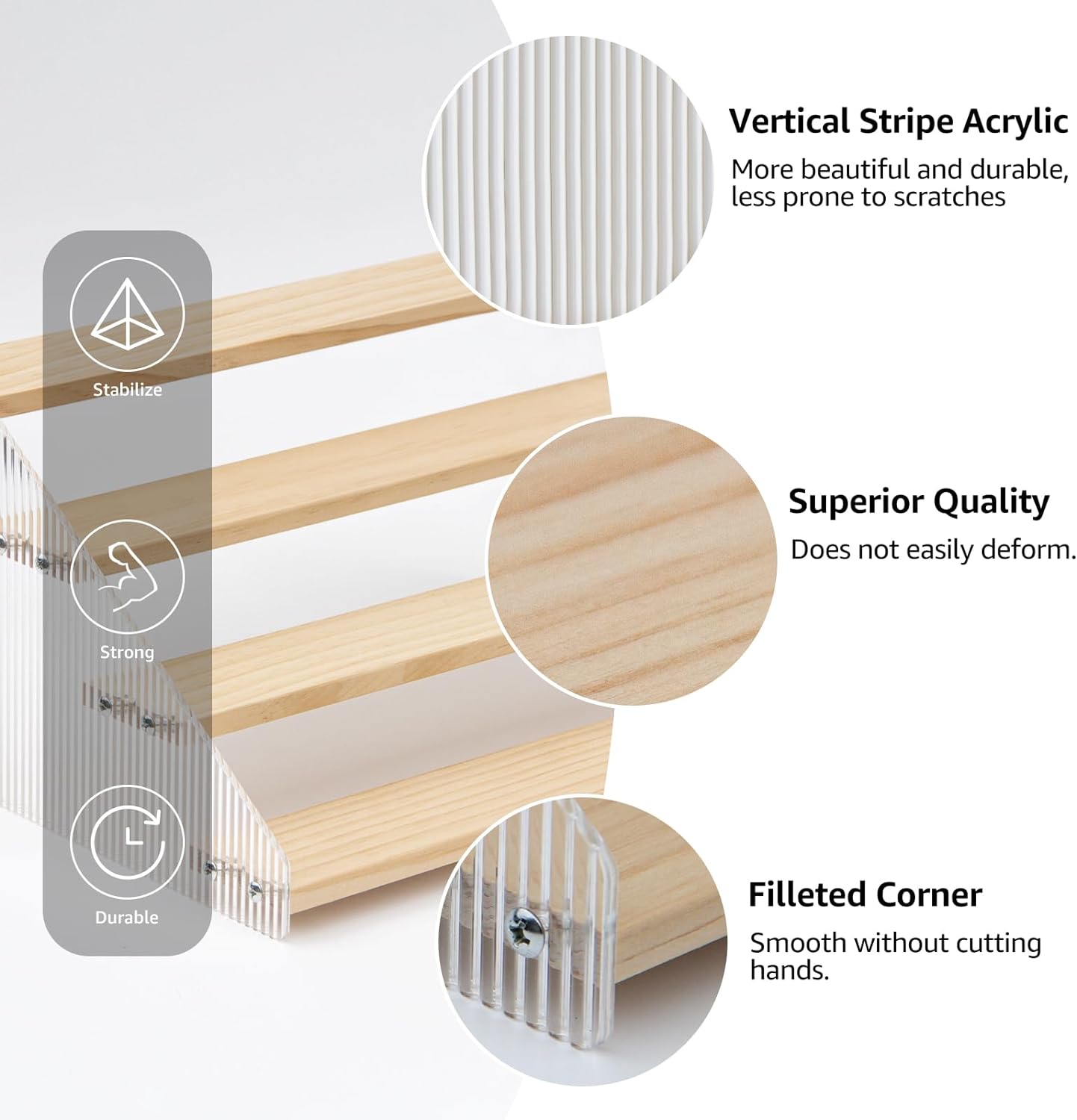 • Elegant & Sturdy: Risers display stands constructed from high-quality pine wood and corrugated acrylic, making it both aesthetically pleasing and fashionable, as well as durable and resistant to deformation, the spice shelf is a beautiful and robust addition to any space