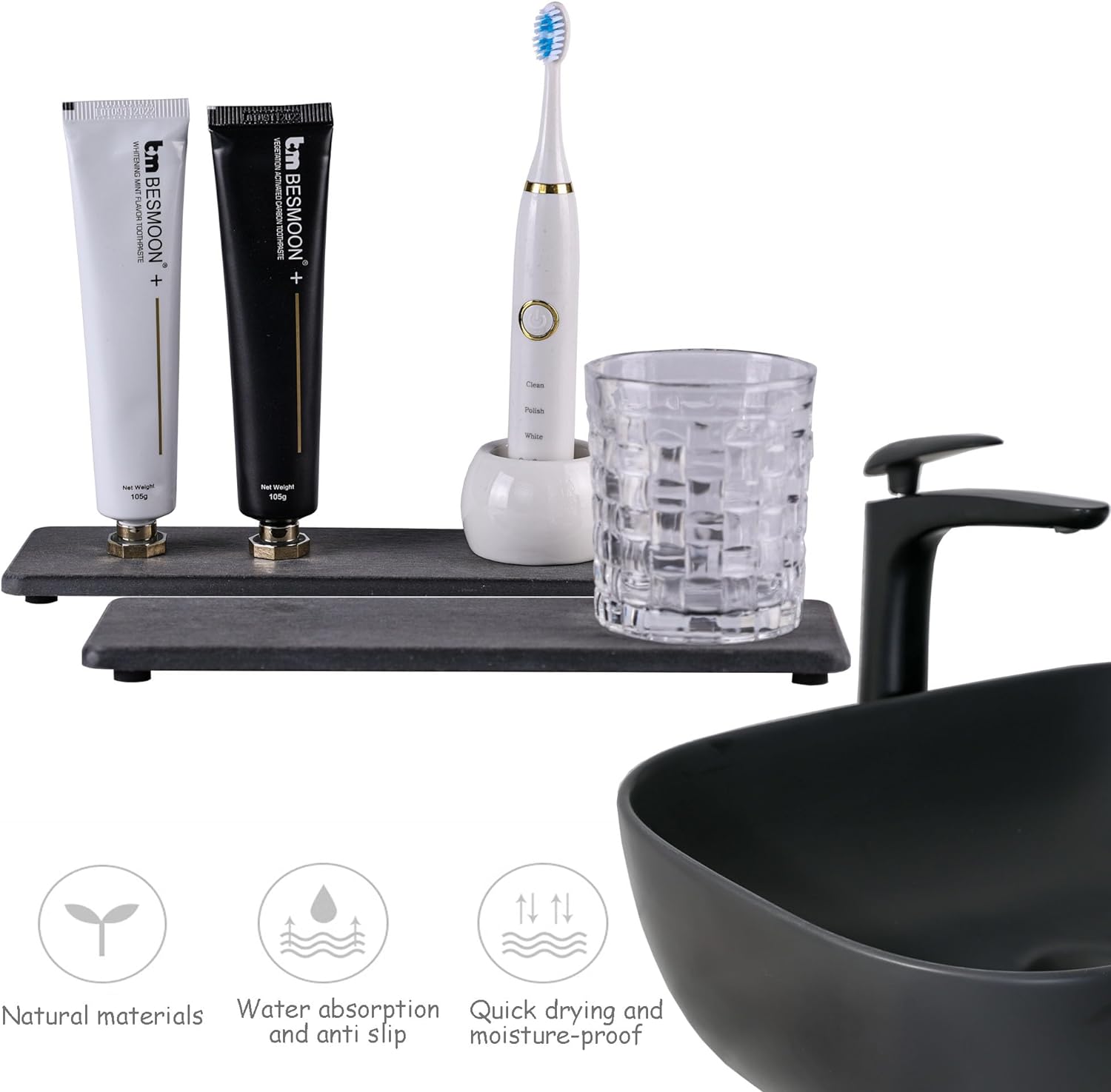 2 Pcs Water Absorbing Stone Trays, Kitchen/Bathroom Sink Soap Dish, Diatomite Tray Used for Hand Soap & Cosmetic Bottles in The Modern Home, 3.15" W x 10.2" L, Dark Gray