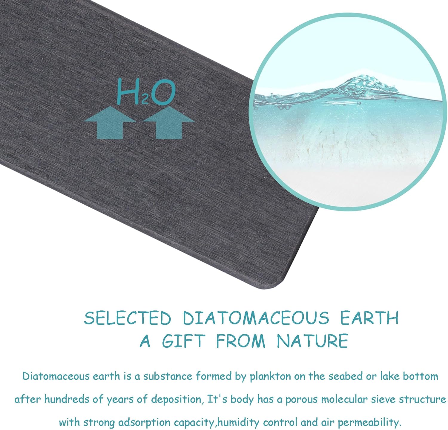 • Made from natural Diatom mud and plant fiber, small holes within diatomite enable it have amazing water absorption. They could absorb water and gets dry in a few minutes. It makes the Bathroom Counter top more dry and tidy.