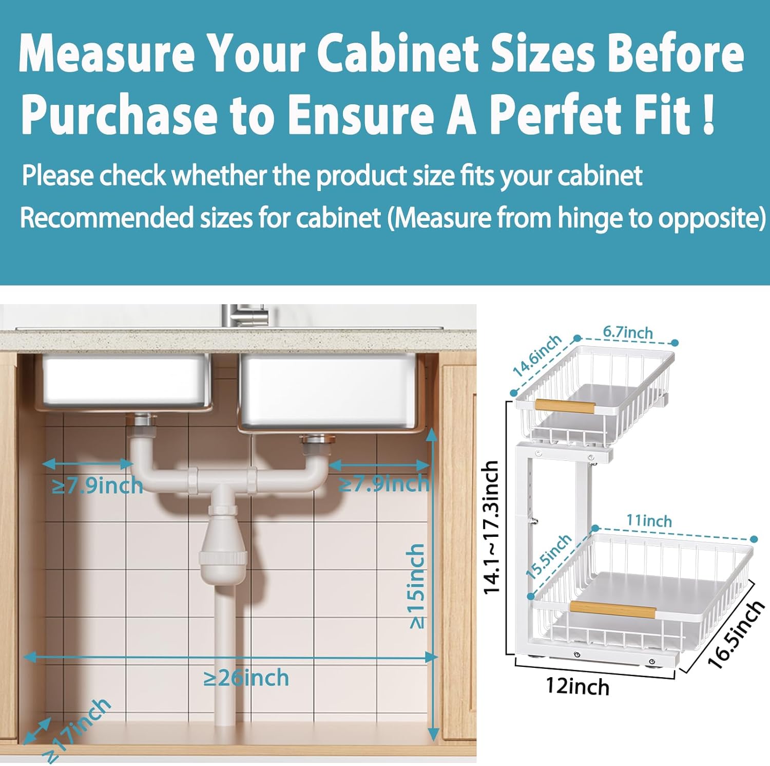 • Larger Size and Storage Capacity: Liuoud upgraded under sink pull out organizer larger than others. The upper basket measured 14.6”×6.7”×2.5”, the lower basket measured 11”×15”×23.3”