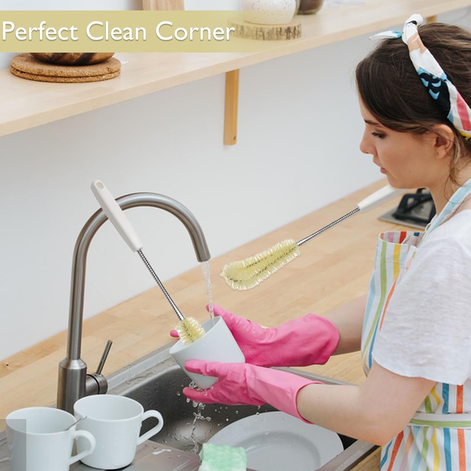 2-Pack 16 inches Long Handle Bottle Cleaning Brushes - Ideal for Coffee Glasses, Pots, Milk Cups, Mugs, Wine Bottles, and Baby Bottles (Beige)