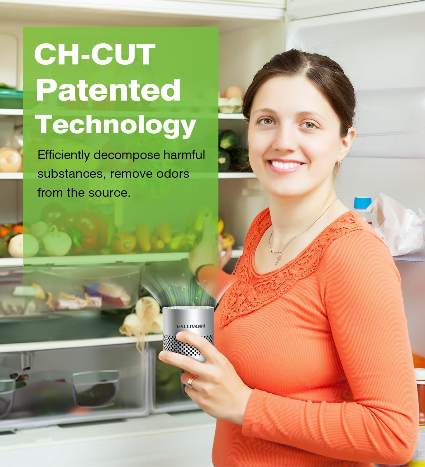 - 【Advanced Technology Fridge Deodorizer】Are you still troubled by the difficult-to-remove odors in your daily life? Choose Exluvon air purifier, which can efficiently decompose harmful substances in the air, eliminating odors at the source with a more thorough and long-lasting effect. Its core technology has been recognized with multiple international awards, worthing your trust.