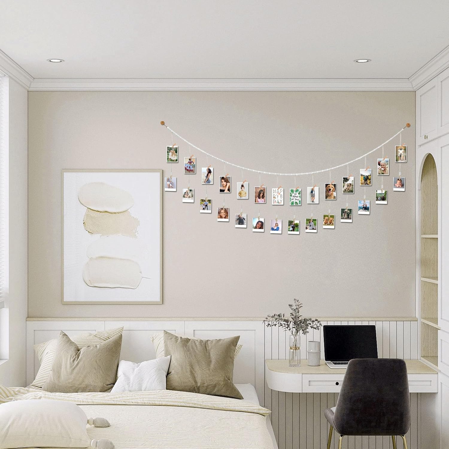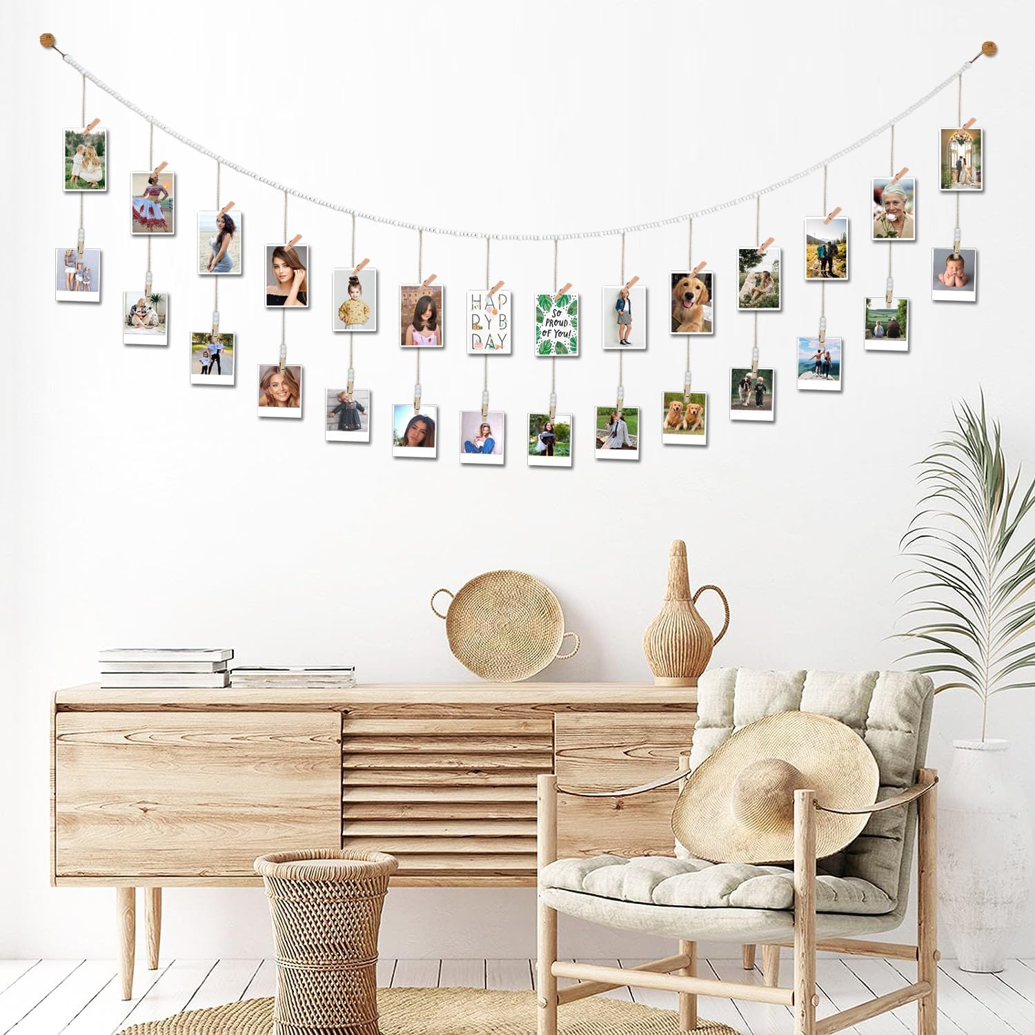 • THE POSSIBILITIES ENDLESS: This beautiful natural wood bead garland with clothespin is perfect for displaying family photos, kids artwork, polaroid photos, homeschool activities, holiday and Christmas cards...