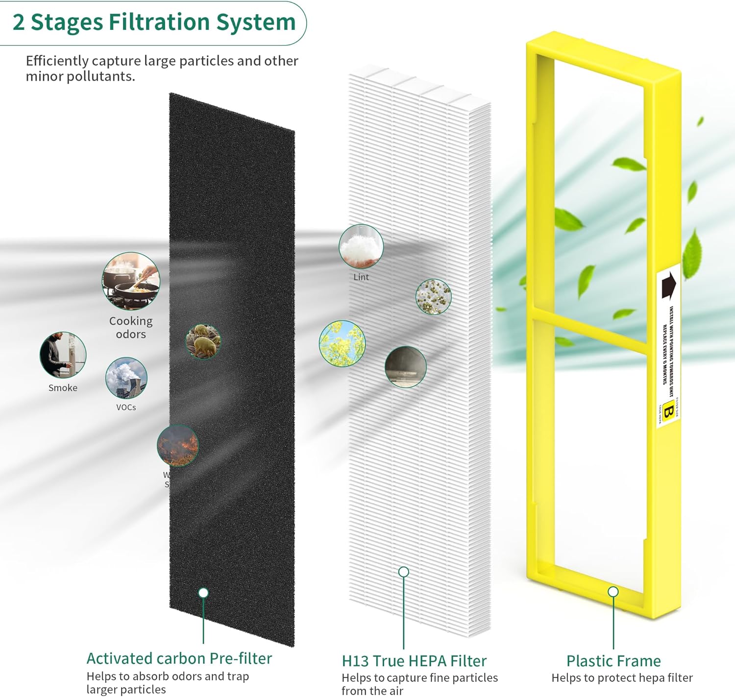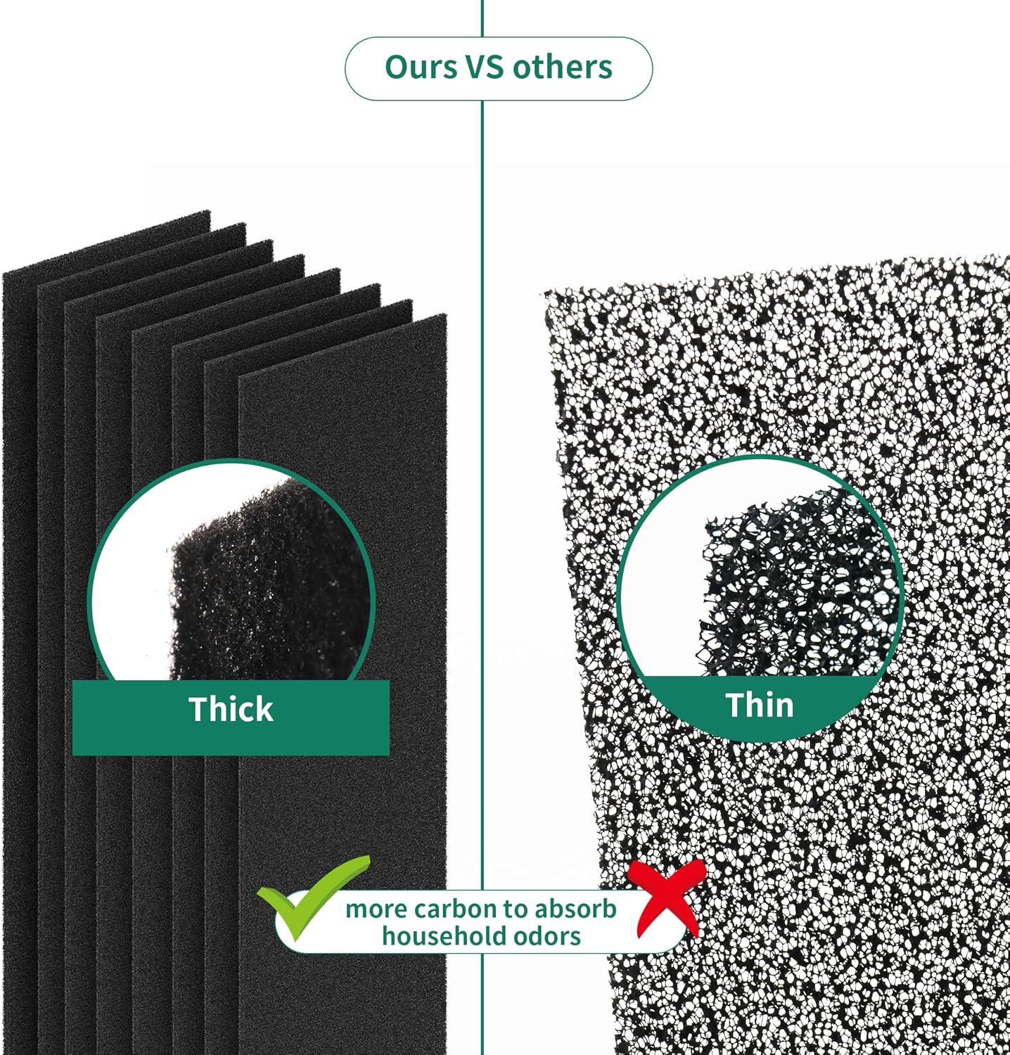 • 【CARBON PRE-FILTERS】Activated carbon pre-filter helps to absorb household odors such as cooking odor,pet odor ,smoke and VOCs