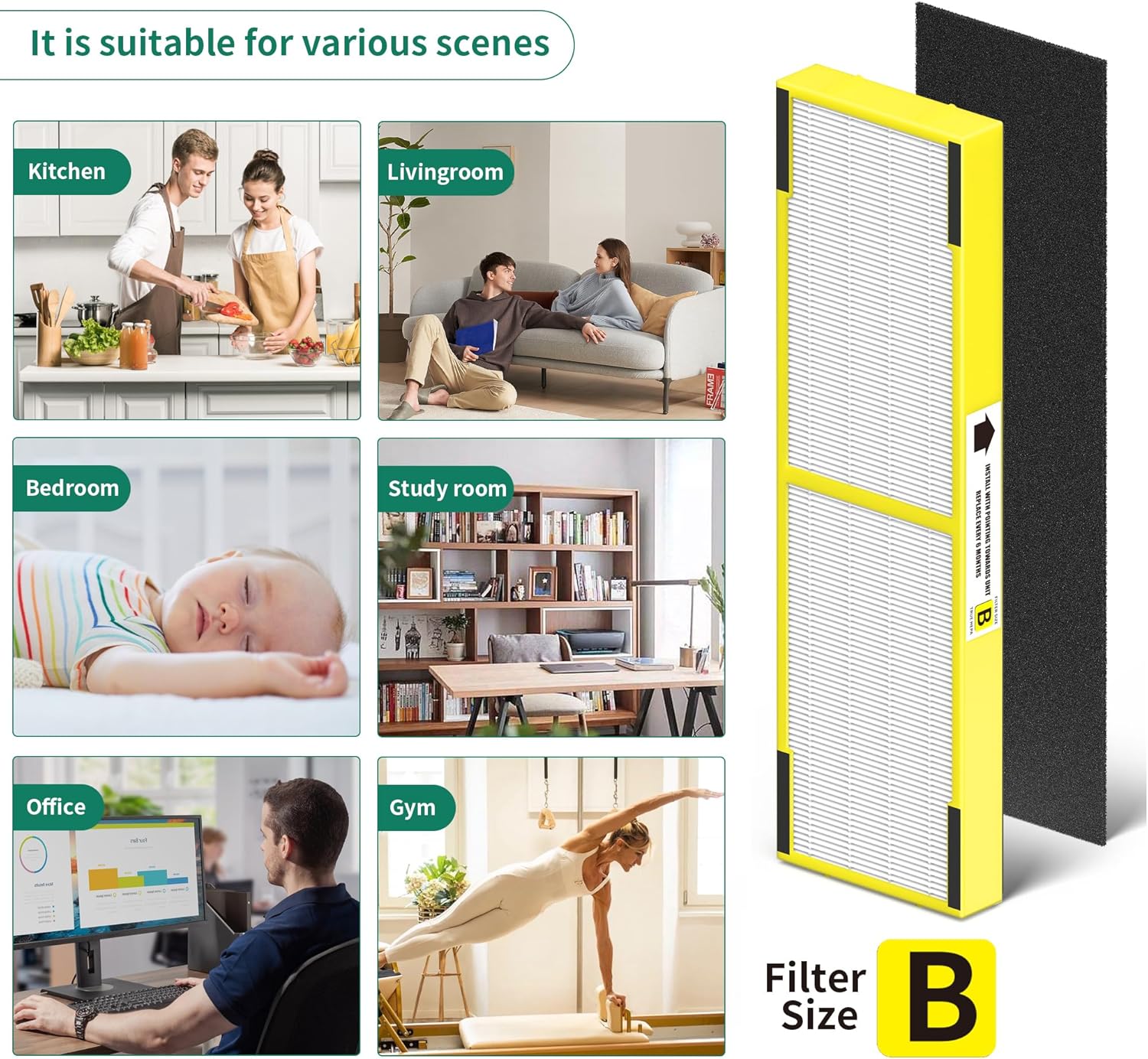 • 【Replacement Tip】The HEPA filter B can be replaced 6-12 months and the activated carbon pre-filter can be replace 3-6 months depending on using frequency