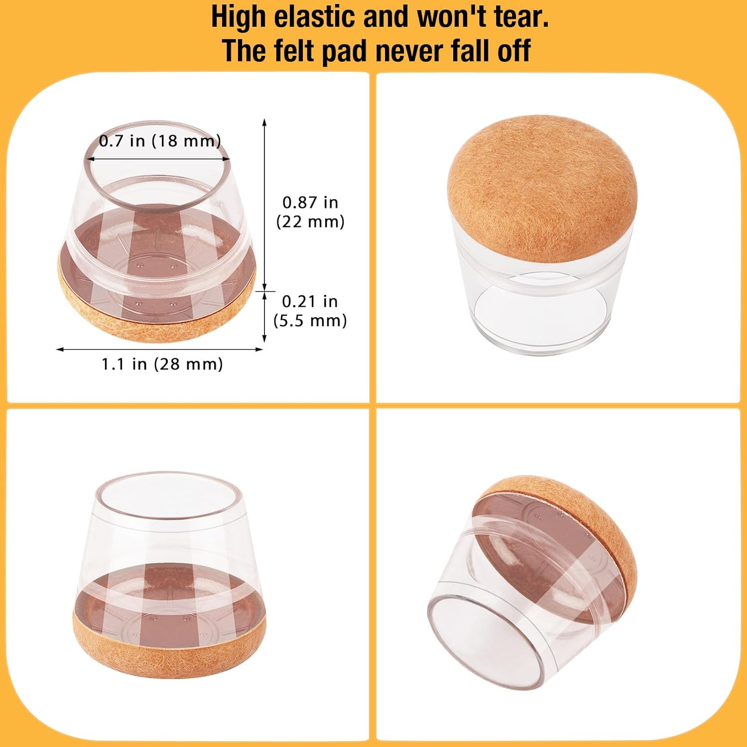 • 【Upgrade New Design】: 360° full felt pad bottom wrapped, which helps the felt bottom be able to touch the floor at any angle, preventing scratching the floor. Our chair leg floor protectors do not use gel. The bottom felt pad and the silicone chair leg floor protectors are integrated with a high-pressure machine to ensure that they will never fall off.
