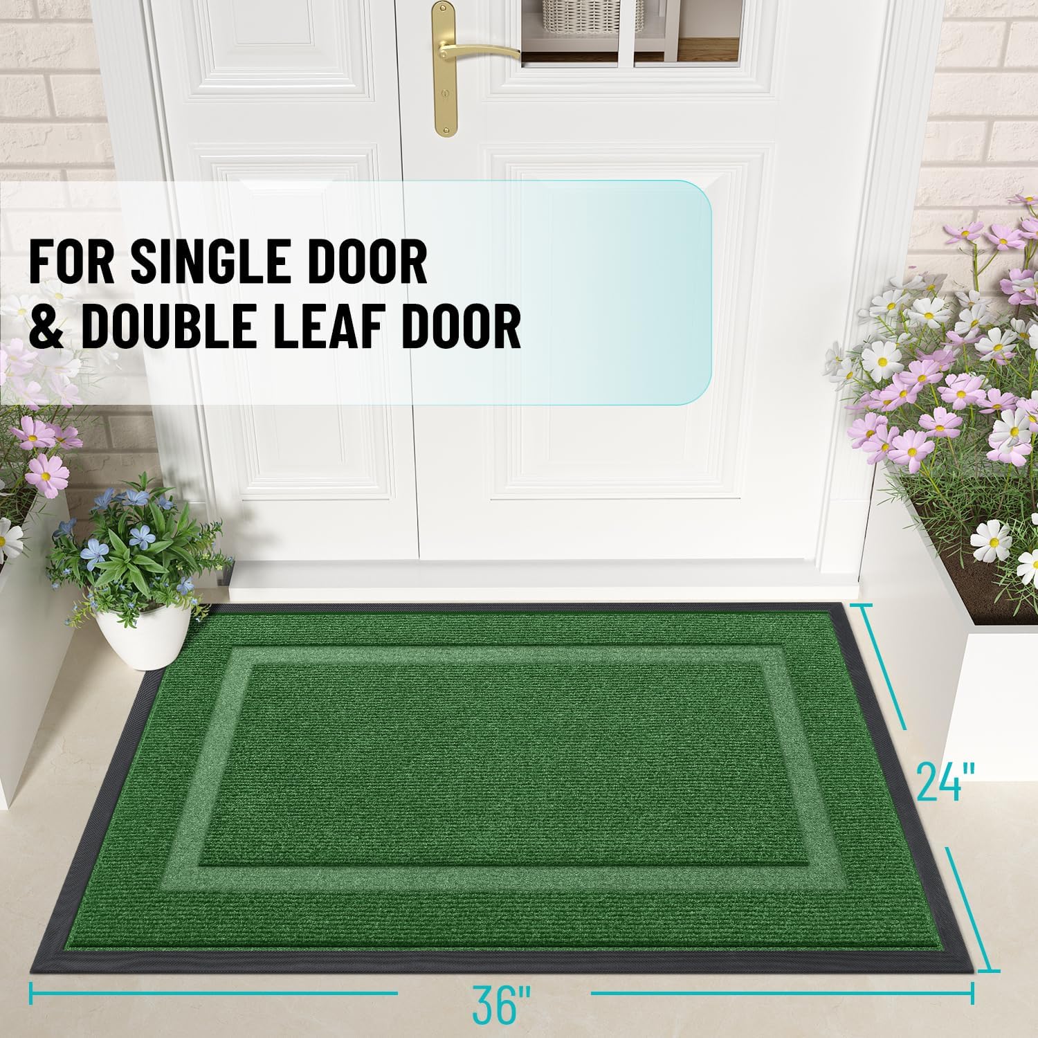 OLANLY Front Door Mat Indoor Outdoor Entrance, Waterproof All-Season, All-Weather Doormat, Sturdy Natural Rubber, Fade Resistant, Low Profile, Easy Clean Patio Porch Entryway Mat, 36x24, Green