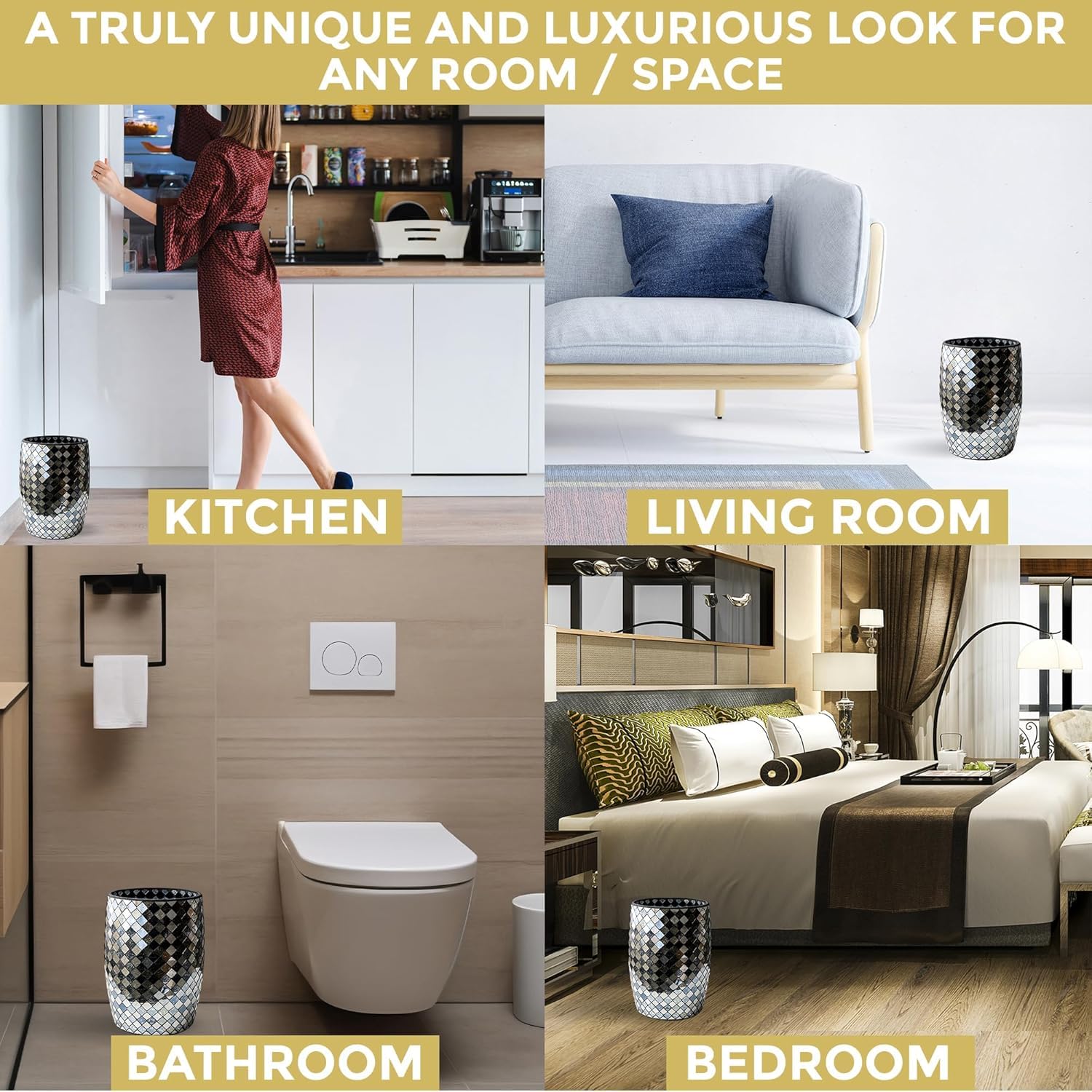 • Versatile Mosaic Glass Decor - Add a touch of glamour to any room with this small Trash Can, enhancing the ambiance in bathrooms, bedrooms, offices, kitchens, living rooms, or any open area.