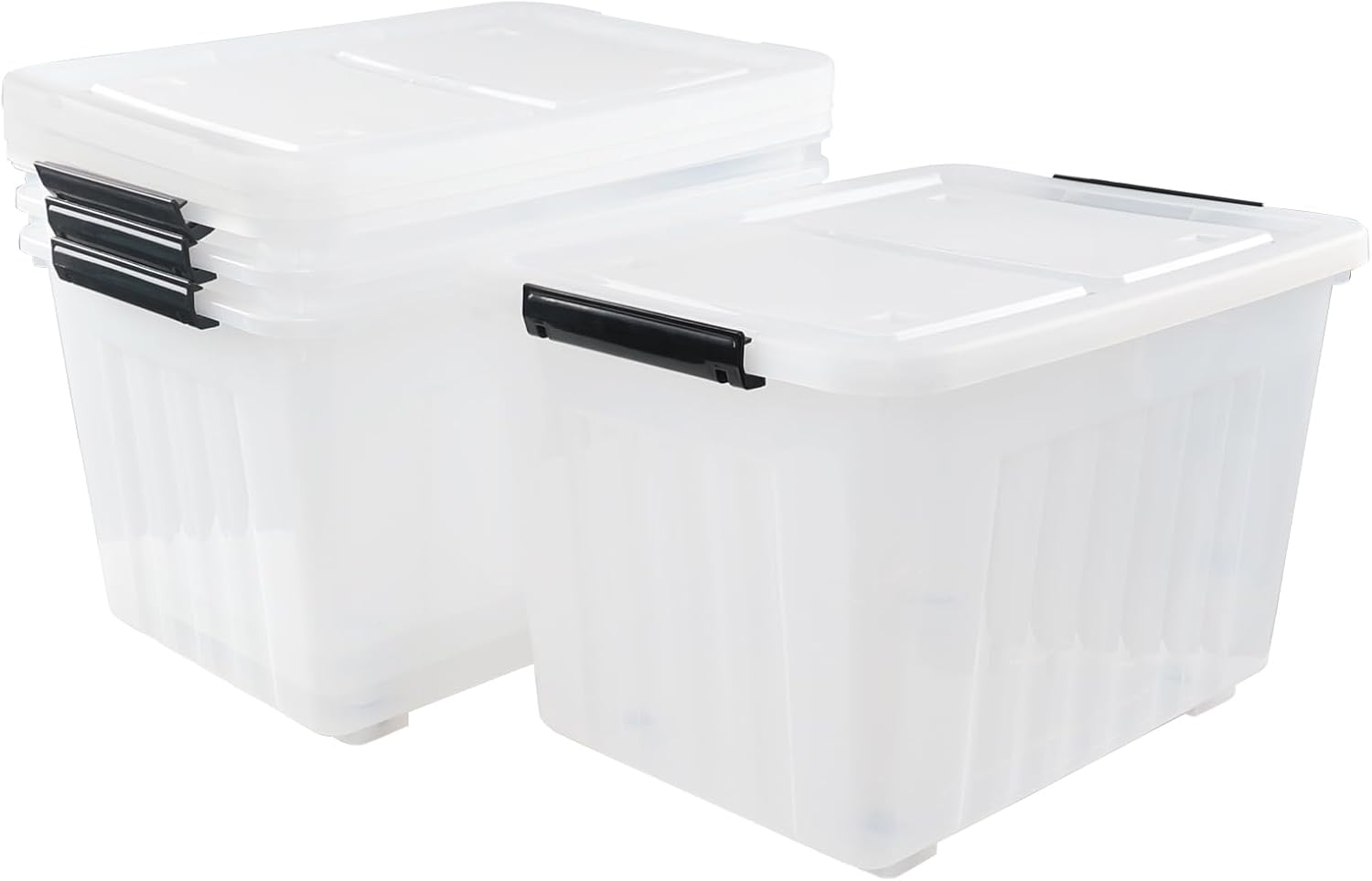 4-Pack 42 L Clear Plastic Storage Container Bin with Lids and Latch Buckle, Clear Storage Latch Box/Bin with Wheels