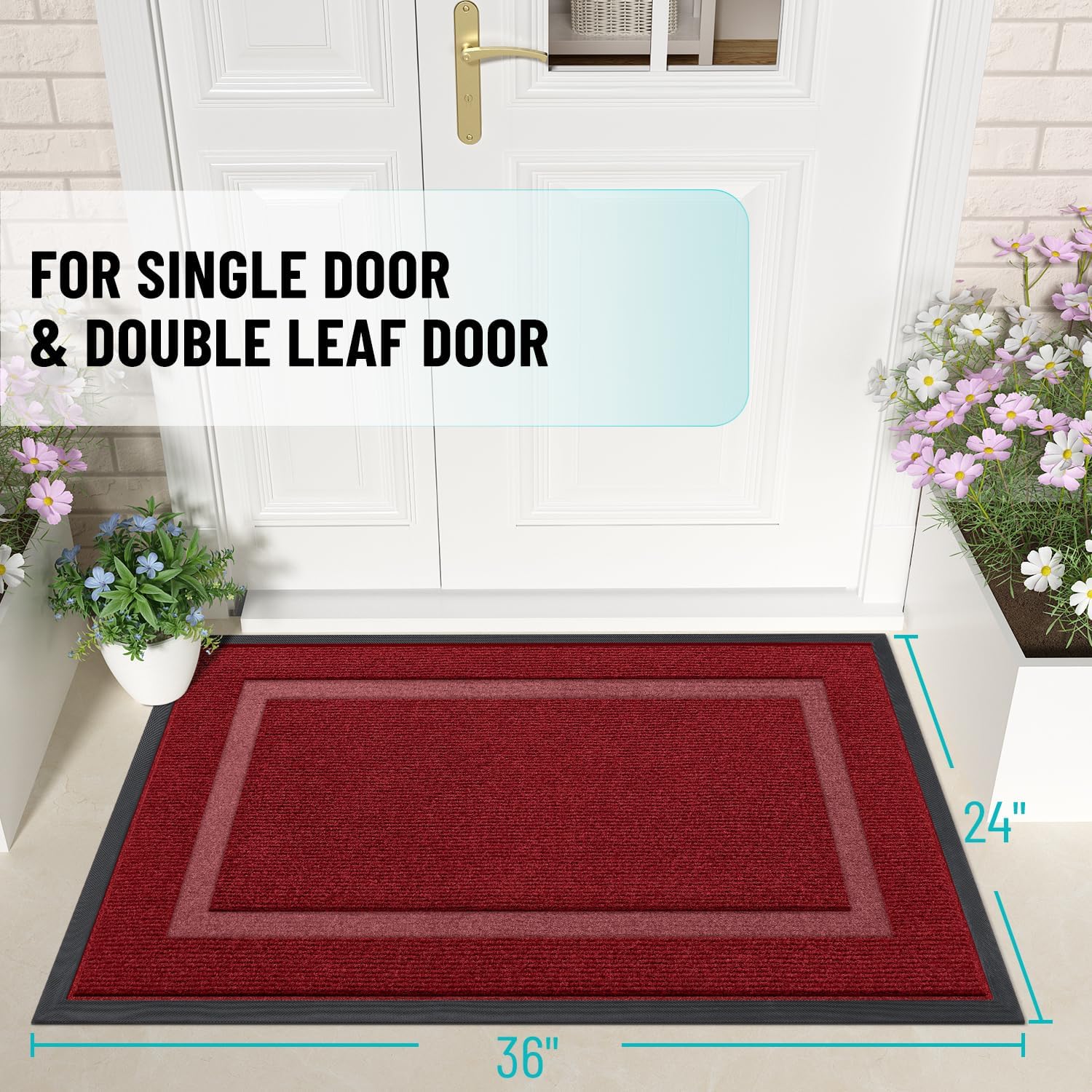 OLANLY Front Door Mat Indoor Outdoor Entrance, Waterproof All-Season, All-Weather Doormat, Sturdy Natural Rubber, Fade Resistant, Low Profile, Easy Clean Patio Porch Entryway Mat, 36x24, Wine Red