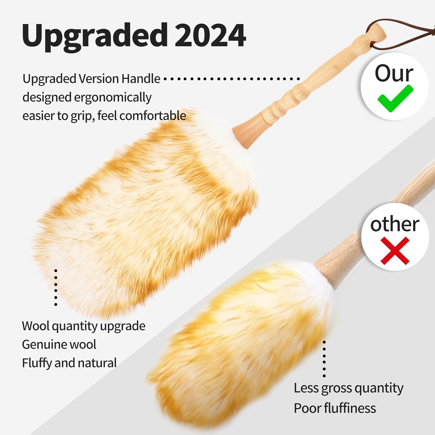 Lambswool Duster with Solid Wooden Handle,Leather Hang Strap,Comfortable Grips 19.6 inch Long Natural Feathers Dusters for Cleaning Wall Plant Desk Blind Cleaner Duster Tool