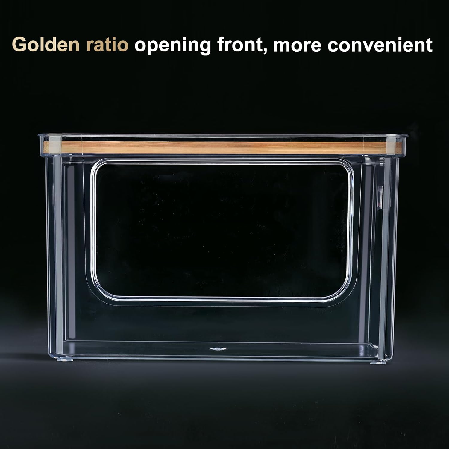 Hudgan Stackable Storage with Bamboo Top for Laundry Room Organization, Extra Large Trash Bag/Garbage Bag Dispenser, Under Sink Organizer, Pantry Organizers