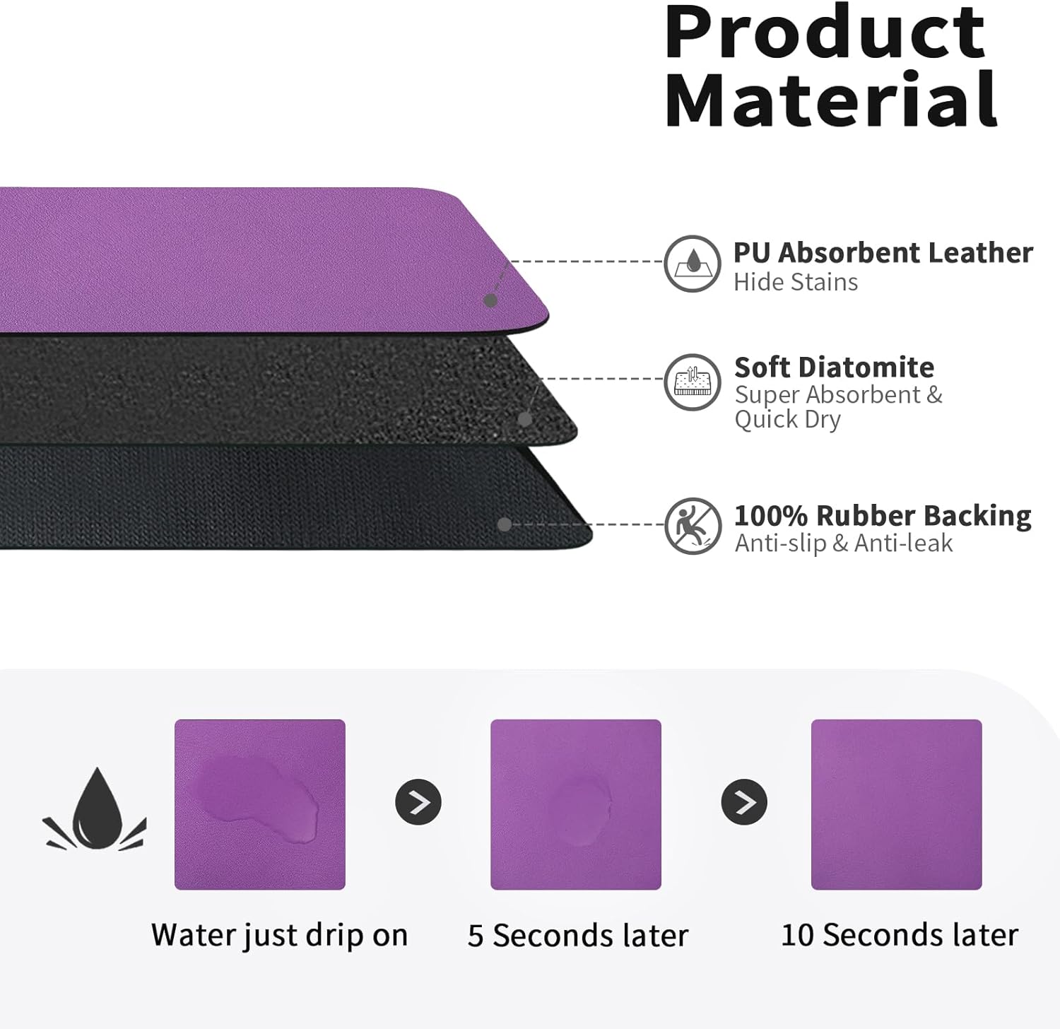 Dish Drying Mat for Kitchen Counter, Heat Resistant Drainer Mats with Non-slip Rubber Backed, Hide Stain Kitchen Super Absorbent Draining Mat, Easy to Clean Dish Rack Pad, Purple 18"x24"