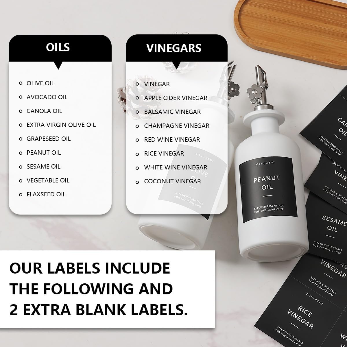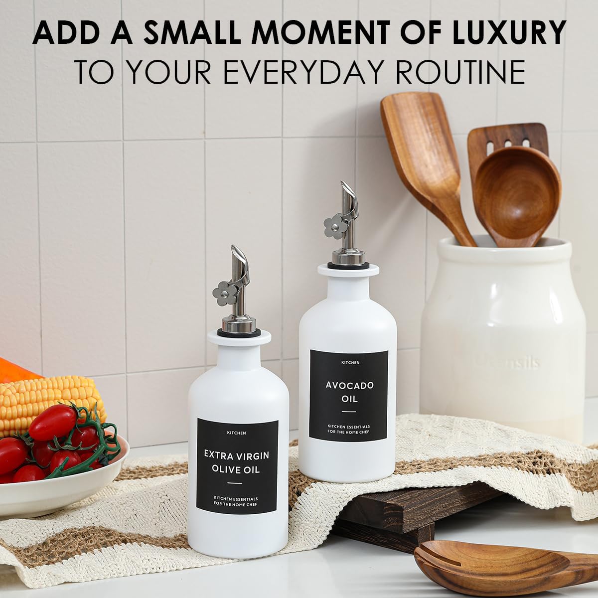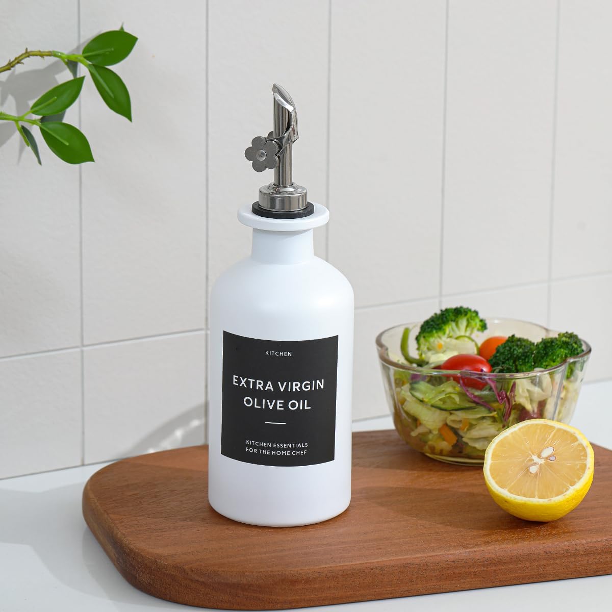 • KITCHEN ESSENTIAL - Worthy of sitting on your kitchen counter, The olive oil bottle dispenser for kitchen with label which can help you identify them easily, both decorative and practical, this oil dispenser bottles not only kitchen oil dispenser, but also black and white kitchen décor.