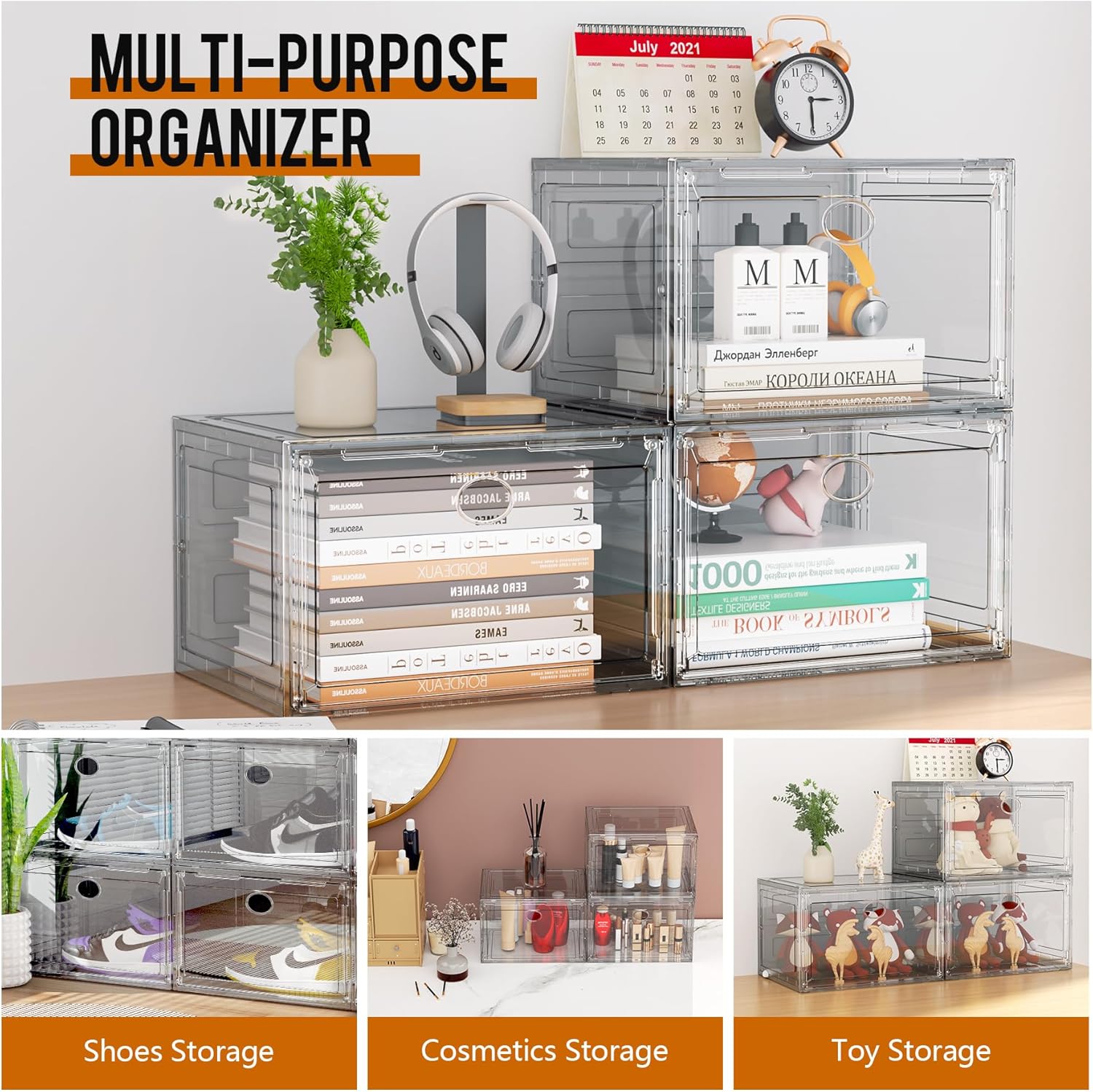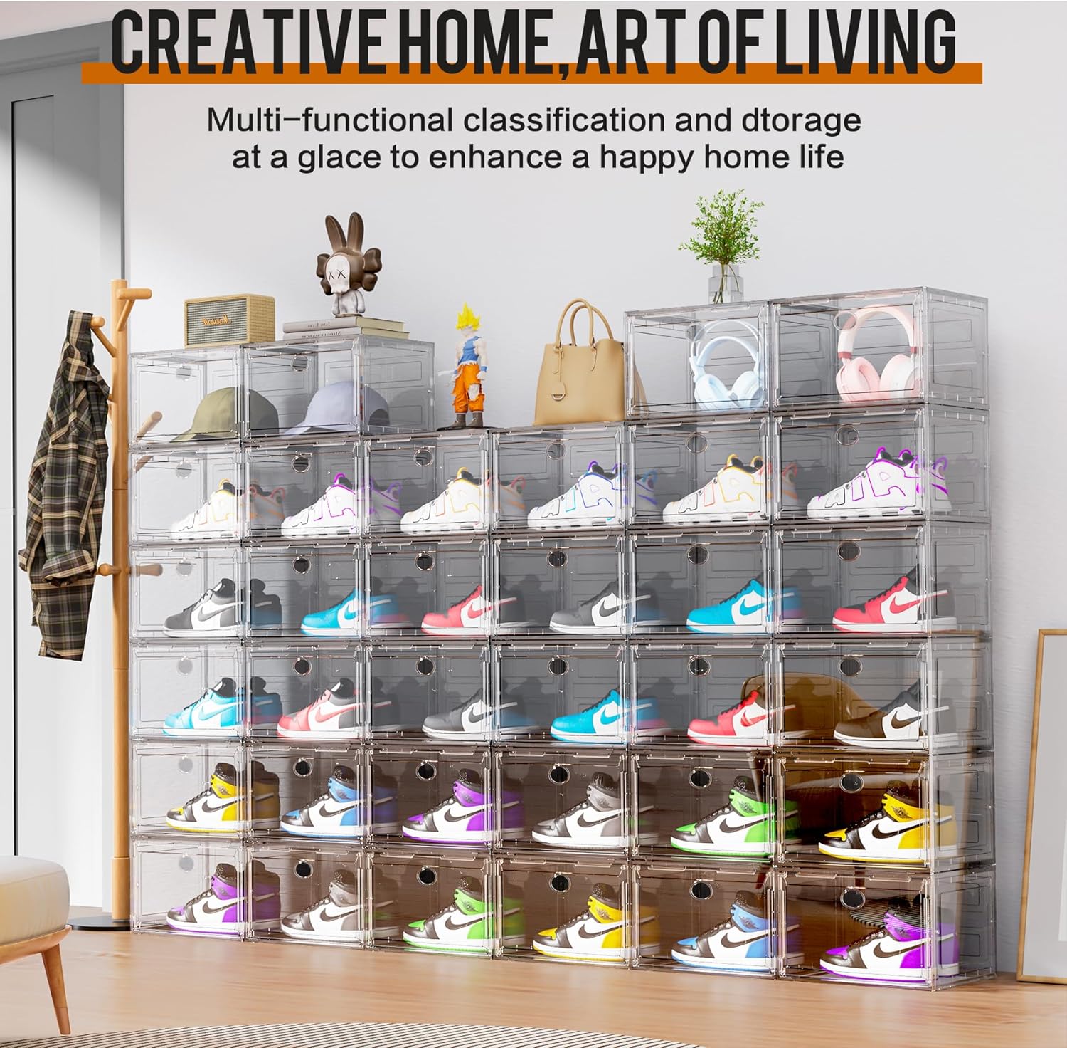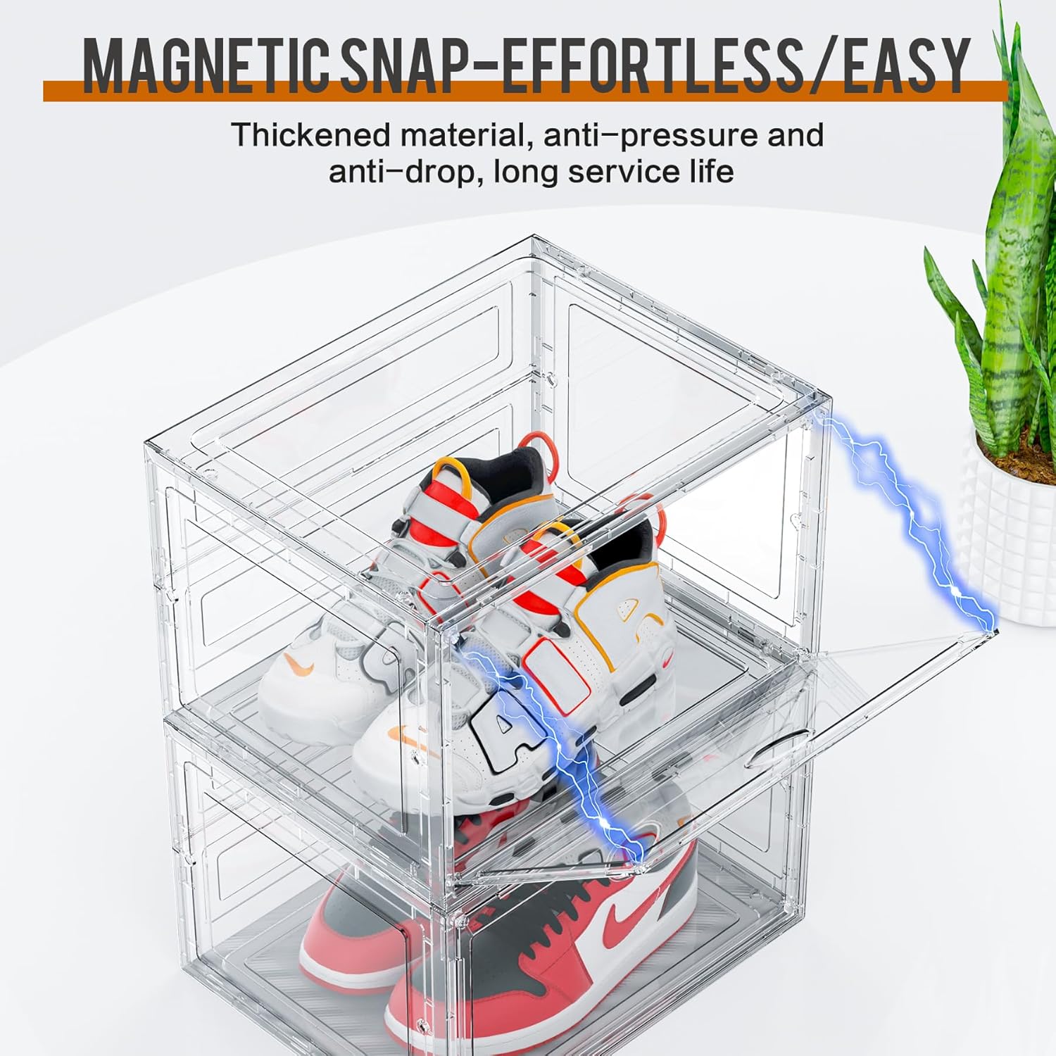 KEFA XL Shoe Storage Box Organizer, 6 Pack Shoe Boxes Clear Plastic Stackable, Sneaker Display Case Container Fit for US 13 (Side 6 PACK CLEAR)
