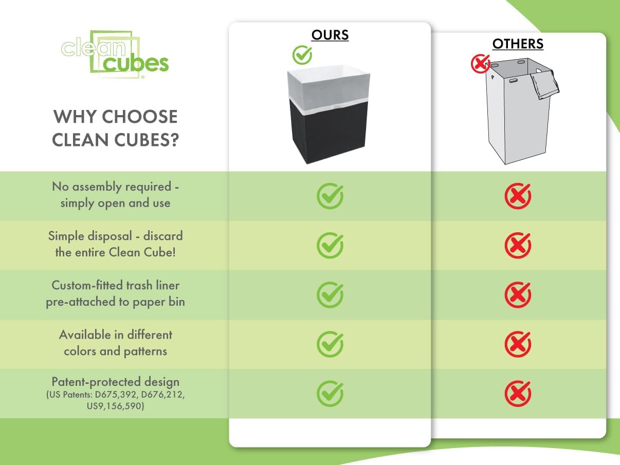 • ✅ 【EFFORTLESS CLEANUP & DISPOSAL】Simply unfold, use, and toss — keep your event clean and mess-free without extra effort. Clean Cubes are disposable recycling bins and trash cans with a patent-protected design and custom-fitted trash liner in each bin.