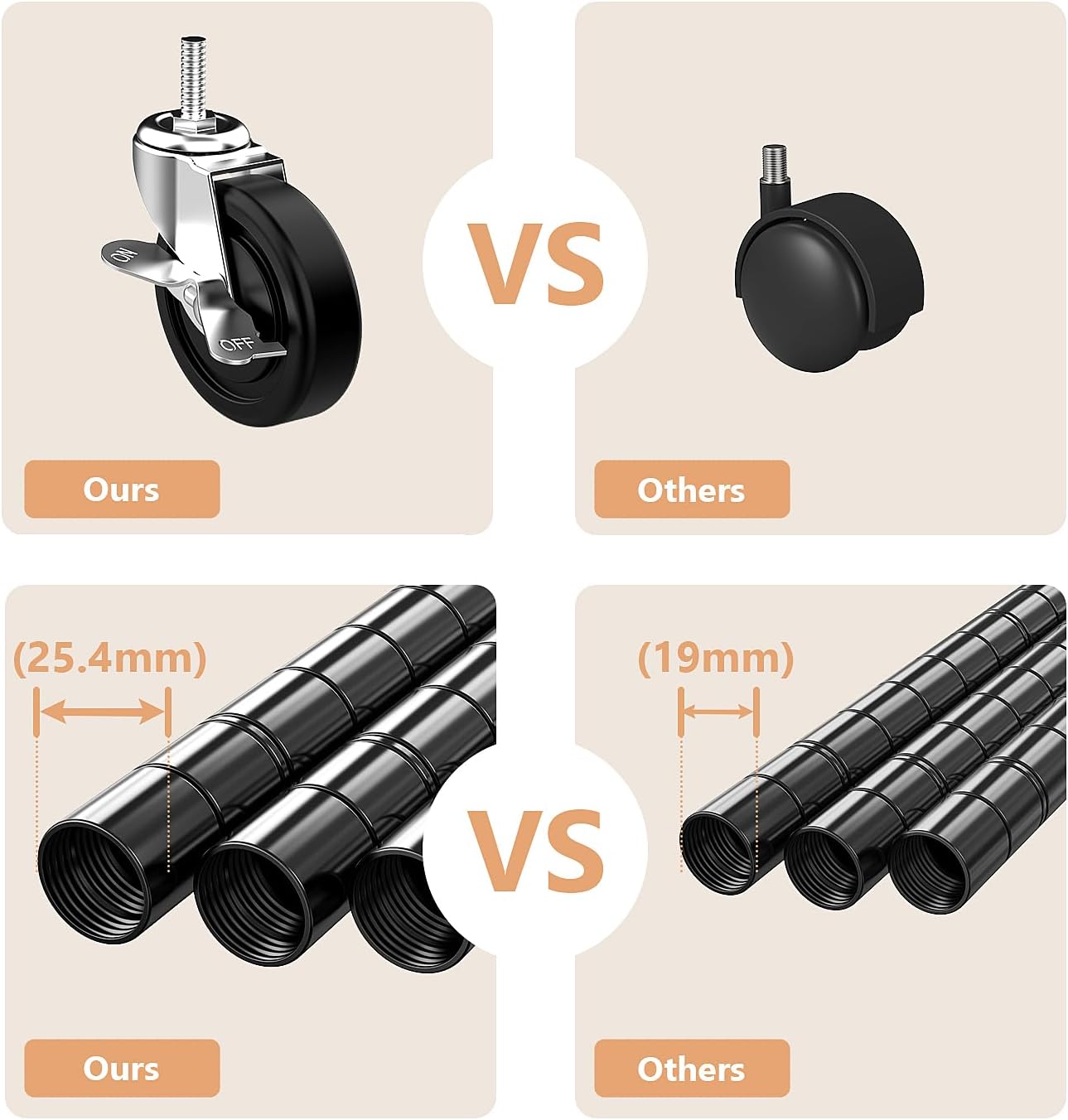 • Sturdy And Long-lasting: The garment rack is made of high-quality carbon steel and anti-rust materials. The diameter of the pipe is 25.4 mm which is thicker than others, so that ensures stability, sturdiness, and durability